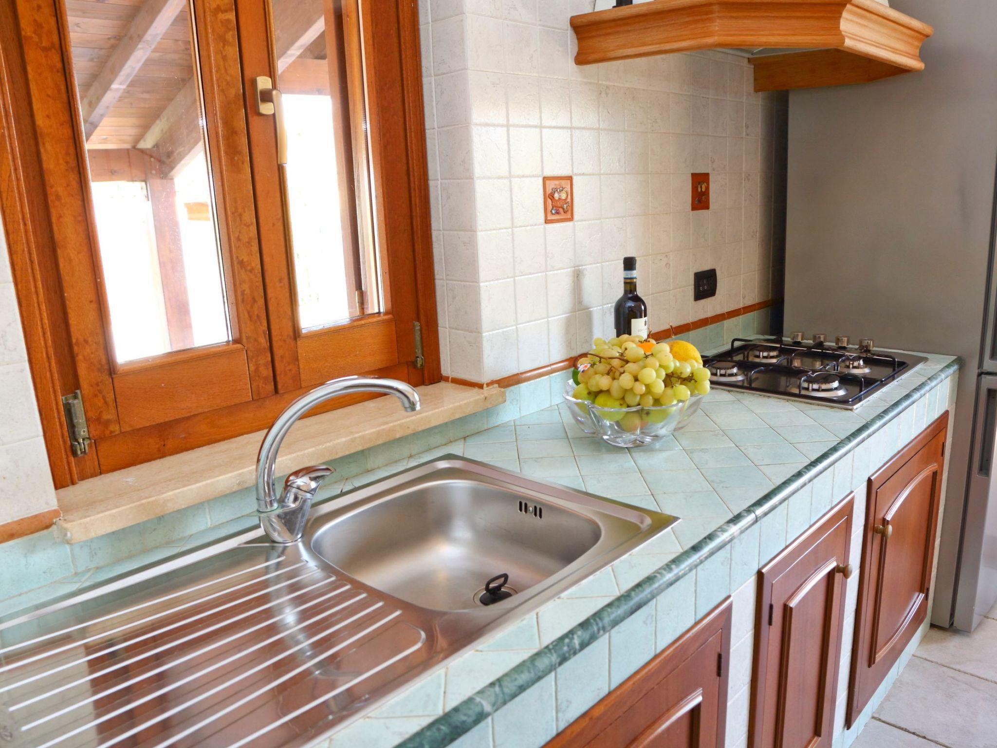 The outside area of the villa has a veranda that can be used as a dining area, a large garden and a barbecue area. In the garden there is also a shower, toilet, sink and foot wash basin, which are very useful for long afternoons sunbathing or returning from the sea. Private parking for cars and motorbikes is free of charge.