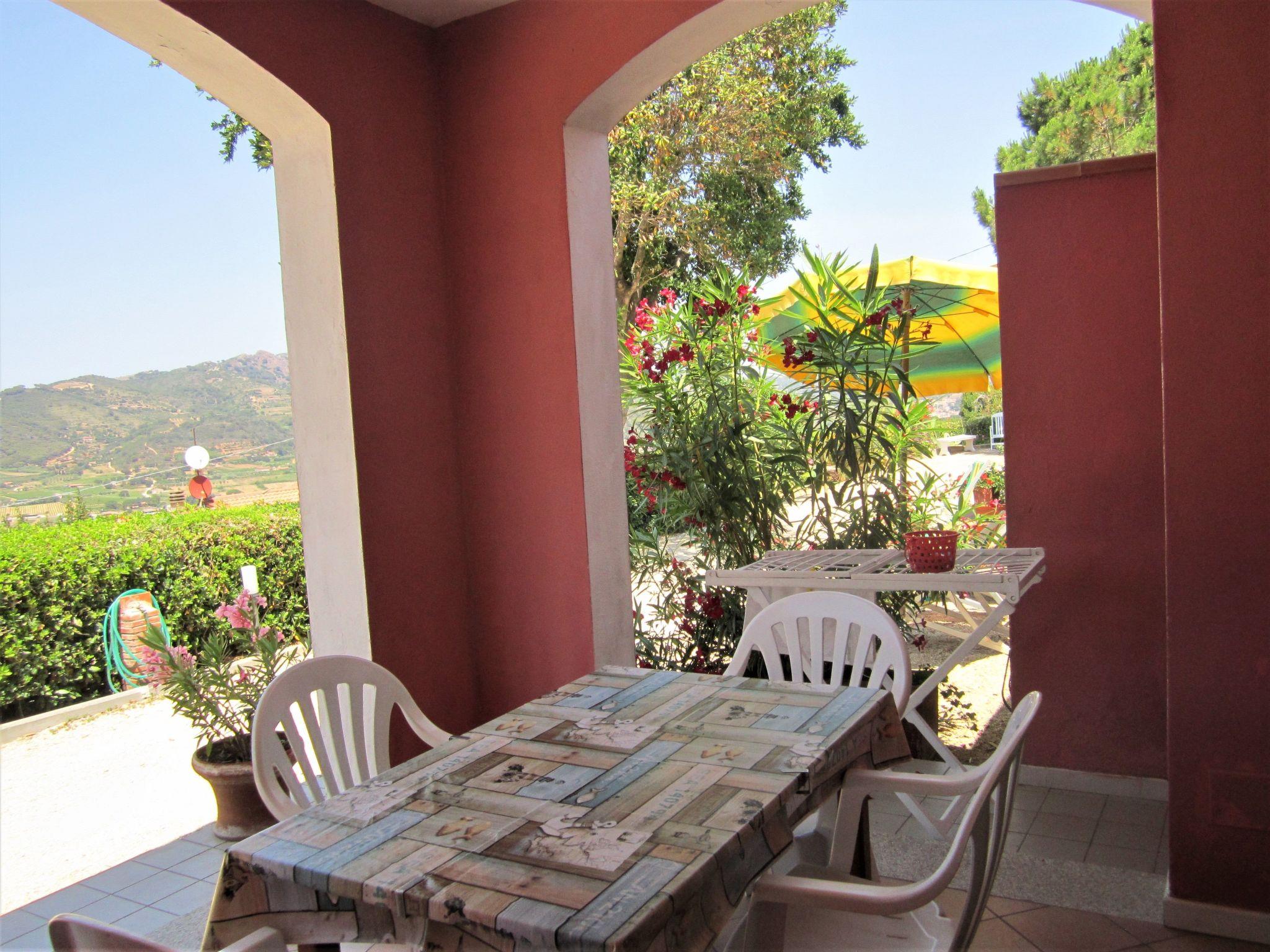 Lovely two-room flat in the villa on the Island of Elba; (46sqm 4/5 beds) The flat consists of a double bedroom, a sofa bed in the living room, plus another extra bed and a bathroom with shower box and shower head.In the kitchenette equipped with fridge and freezer, glasses, cutlery, dishes, tables and chairs, satellite TV LCD LED, free internet WI/FI connection, books in the room, covered outdoor porch with tables, chairs, sun loungers and deck chairs, private covered parking. shared with the other lodgings in the villa. laundry room, barbecue, outdoor shower, garden furniture, outdoor space for small animals, children's games (ping, swings, slides), panoramic forecourt with pretty garden and timed outdoor lighting system, solarium garden.Excellent solution for those seeking a relaxing holiday in the midst of nature. Room cleaning and sanitisation techniques: This property adheres to the standard sanitations on a regional basis "Regional protocol of safe accommodation" (Italy), with the cleaning practices recommended by the European Holiday Home Association (Europe). The staff uses disposable masks and gloves; each accommodation is equipped with hand sanitiser and soap; there are hand sanitiser dispensers in the common areas.Brief descriptionOther : Non-smoking houseBrief description 1Total kitchens : 1SurroundingsSports facilities nearby : Surfing, Golf course, Canoeing, Sailing, Cycling, Mountain biking, Climbing, Water skiing, TennisGarden and outdoor areasGarden facilities : Grill, Garden furniture availableAdjacent leisure facilities : Playground, Table tennis, SolariumOutside: Barbecue; Garden; Private parking; Parking: 1; General: 2. double bed; 2. single bed; Bath: 1; Bedroom; Living: Fireplace; TV; Satellite TV; Bath/WC: Shower; Solarium nearby; WC; Kitchen: Cooker; Coffee machine; Other: Non-smoking accommodation; Pet allowed: max. 1; Internet; Heating; View; Mountain view; Distances (as the crow flies, approx.) Sea distance: 1,00 km;Brief descriptionOther : Non-smoking houseGarden and outdoor areaGarden equipment : Grill