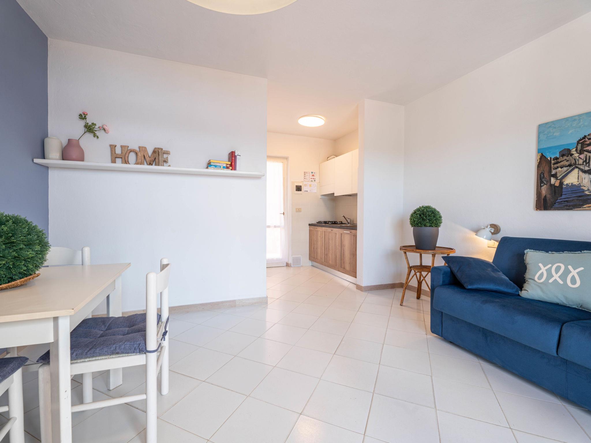 1-room apartment 24 m2 on 1st floor. Practical furnishings: living/sleeping room with 1 double sofabed, dining table and satellite TV. Kitchenette (4 gas rings). Shower/bidet/WC. No heating option. Balcony. Balcony furniture. Beautiful view of the sea. Facilities: safe, baby cot for up to 2 year olds. Parking (1 car). Please note: private entrance. IT049004A1VRLUPTKF