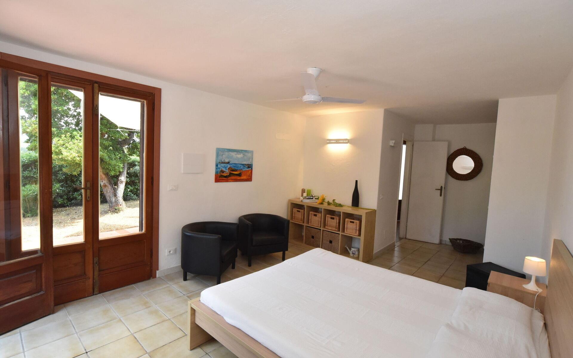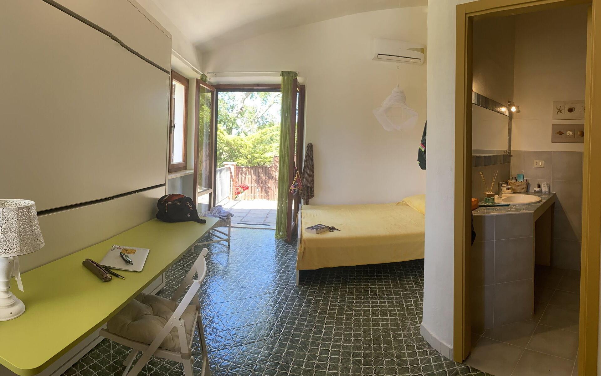 - Heller, offener Raum mit Klimaanlage und Fenstertüren, die sich zum Garten hin öffnen. Ausgestattet mit einem Doppelbett, einem kleinen Einzelzimmer mit Bad