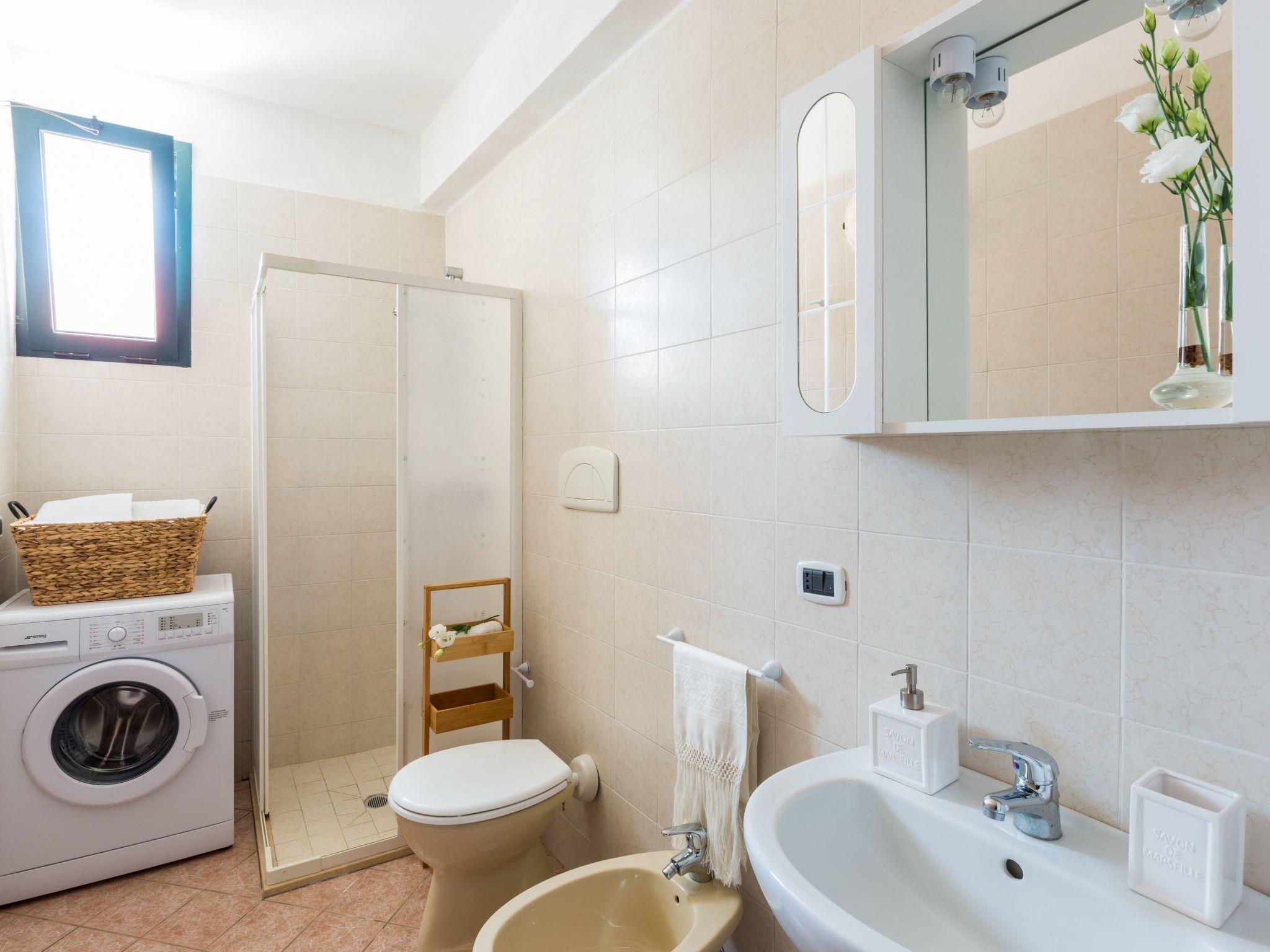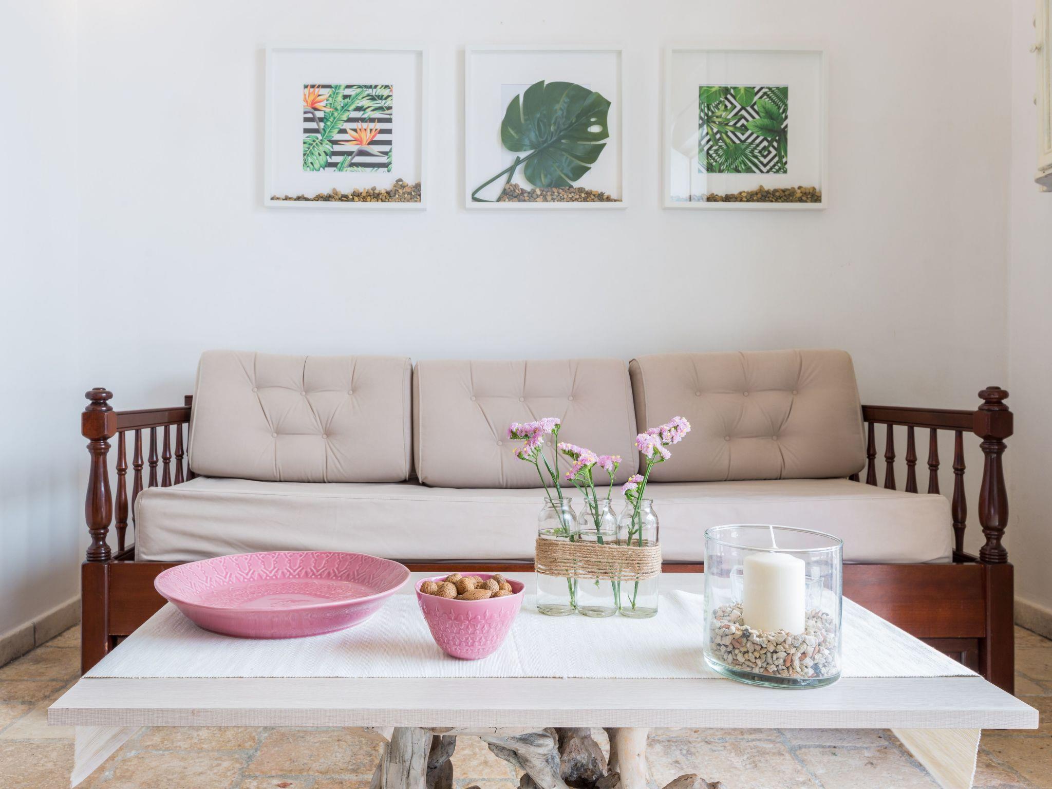 The villa is on two levels. On the ground floor a living room with a sofa double bed, a bedroom, a kitchen overlooking the garden, a bathroom with shower.