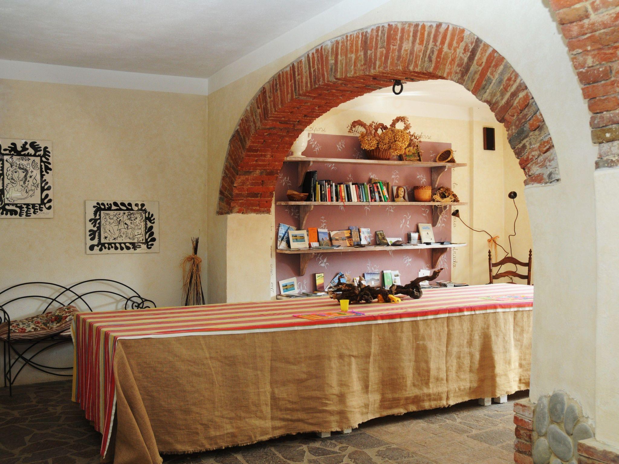 The holiday apartment is on the first floor of the second house. It comprises a bedroom with a double bed, to which a cot can be added, a living room with a kitchen space, and a bathroom with a shower and bidet. The living room has a sofa bed for two people. The kitchen with a dining corner is equipped with a hob with four rings, a coffee machine and Italian coffee maker, a toaster and a fridge.