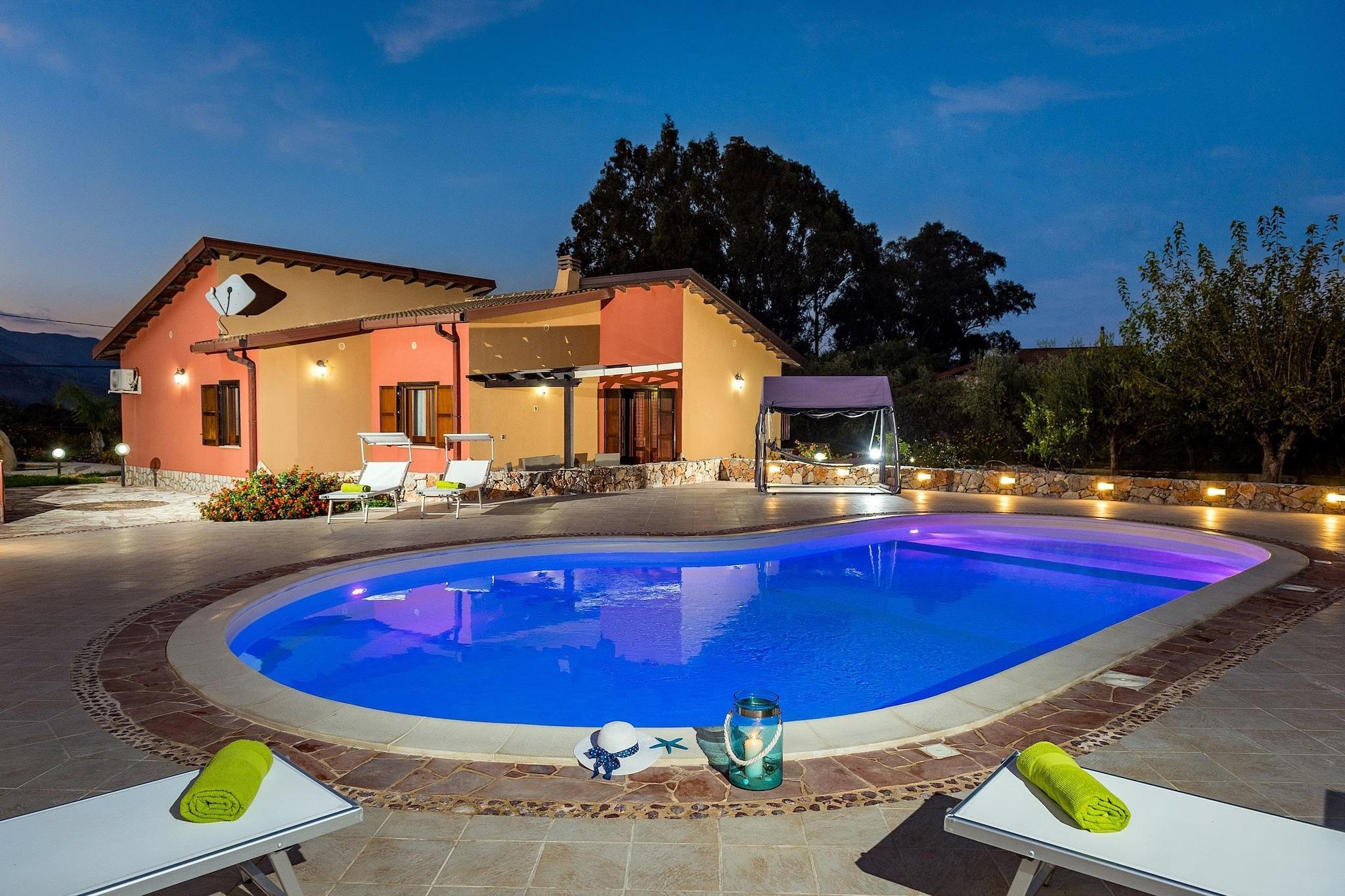 Beliggende i de naturskønne bakker i Castellammare del Golfo tilbyder denne charmerende villa et fredfyldt tilflugtssted for familier eller små grupper. Med 3 soveværelser kan det komfortabelt rumme op til 6 gæster. Uanset om du slapper af i den private have eller nyder en svømmetur i den 10x4 m store pool (åben maj-september), inviterer dette hjem dig til at slappe af i ægte siciliansk stil. Det veludstyrede køkken og hyggelige stue med pejs gør indendørs ophold lige så indbydende. Nyd en grill under stjernerne eller slap af på den overdækkede veranda med havemøbler. Aircondition og varme sikrer et behageligt ophold året rundt. Kun 5 km fra havet og 6 km fra byens centrum, har du nem adgang til restauranter, butikker og en fantastisk kystudsigt. Palermo Lufthavn ligger kun 50 km væk, hvilket gør denne villa til en bekvem base for at udforske Siciliens kultur, køkken og kystlinje. Gratis privat parkering og væsentlige faciliteter afrunder dit opholds komfort.