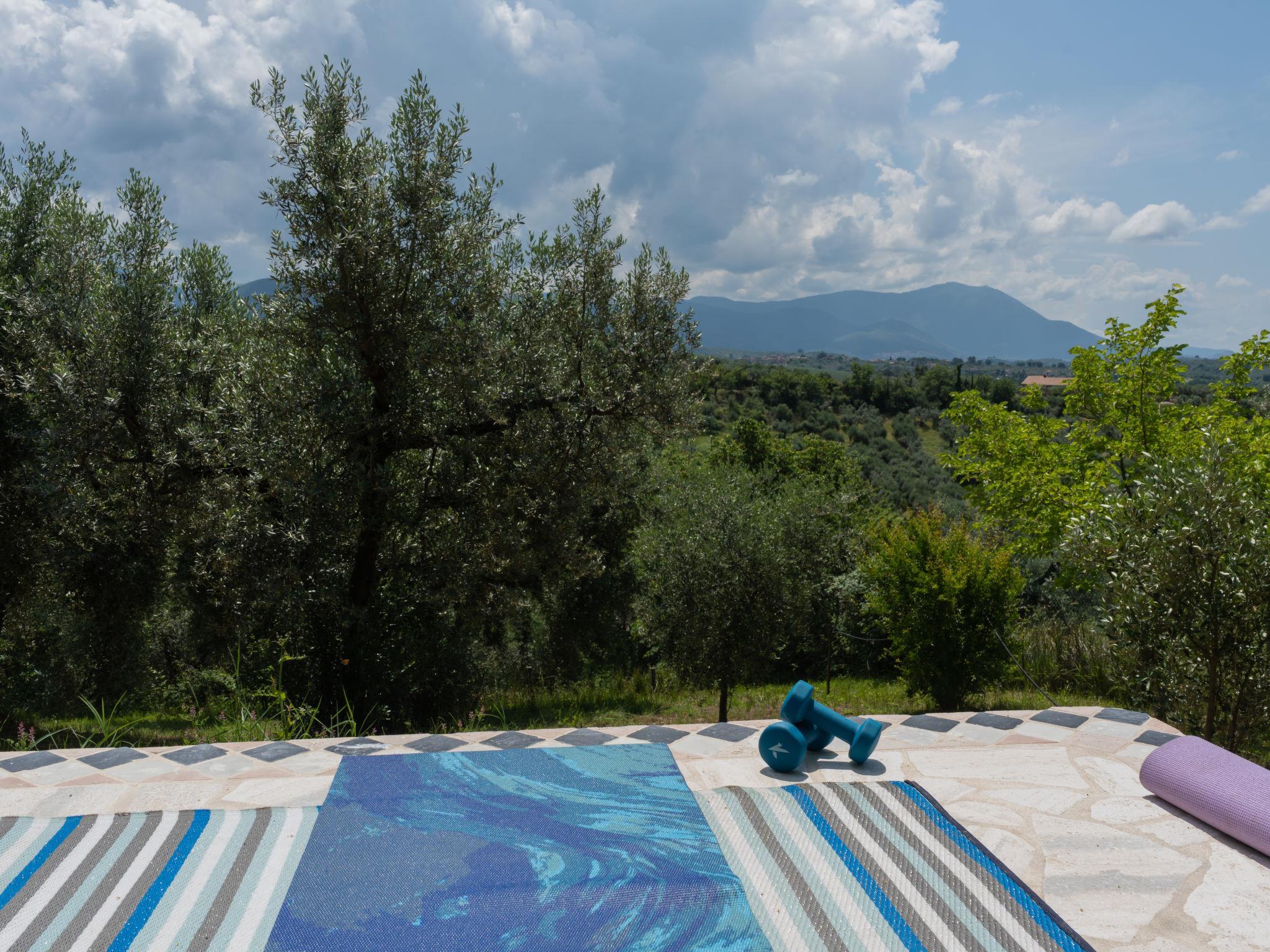 Beautiful, comfortable cottage "Olive Grove Sabina", 2 storeys. Property composed of main house and outbuilding, in the hamlet Canneto 10 km from the centre of Passo Corese, in a secluded, quiet, sunny position, in the countryside. Private: property 1 ha (fenced), garden 1 ha (fenced) with trees, swimming pool (8 x 4 m, depth 120 - 120 cm, seasonal availability: 01.Jun. - 30.Sep.) with salt-electrolysis pool-cleaning system. Shower/WC in the pool area, outdoor shower, table tennis, patio, arbour, pergola, terrace, garden furniture, barbecue, fireplace. Narrow motor access to the house (500 m via unmade road). Shop 1 km, grocery 2 km, supermarket 2 km, bar 2 km, café 2 km, bus stop 1 km, railway station "Fara Sabina FL1 - to Roma" 10 km. Nearby attractions: Roma 45 km, Rieti 30 km, Orvieto 70 km, Tivoli 40 km. Well-known lakes can easily be reached: Lago del Turano 30 km, Lago di Bracciano 40 km. Please note: car recommended. The owner does not accept any youth groups. Residence with electric gates. Yoga/viewing spot available in the olive grove.