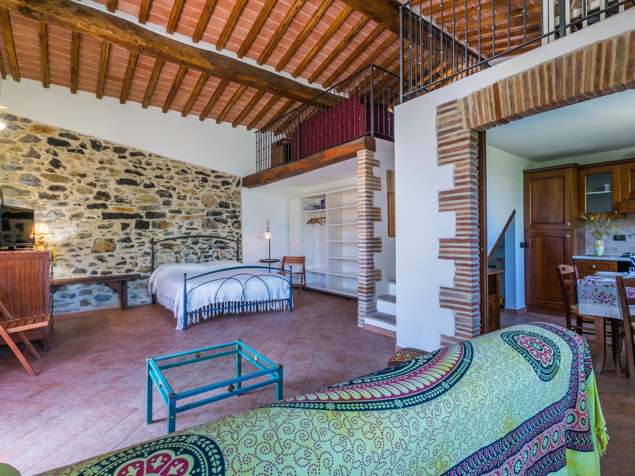 "Fienile", 1-room apartment 50 m2 on 1st floor. Tasteful and cosy furnishings: living room with dining table and satellite TV. Exit pergola. Gallery with sloping ceilings with 2 beds (80 cm), 1 double bed (160 cm). Open kitchen (4 hot plates, oven, dishwasher, microwave, freezer, electric coffee machine). Shower/WC. Heating, air-conditioning. Patio. Box-room. Beautiful panoramic view. Facilities: children's high chair, baby cot. Internet (WiFi, free). Please note: maximum 2 pets/ dogs allowed. Private entrance. IT050011B54OBDBD4V