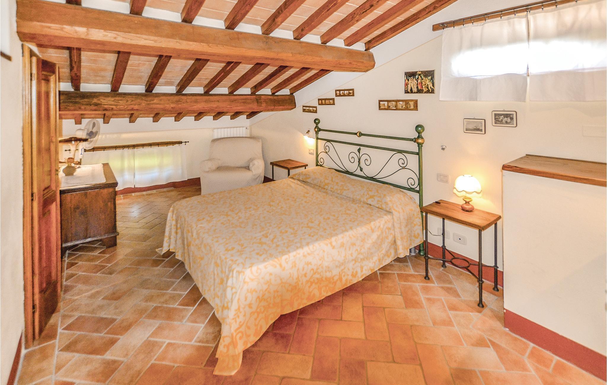 Dette komfortable landhus ligger i romantiske omgivelser, 7 km fra Castiglion Fiorentino og tilbyder de helt ideelle rammer til den afslappende familieferie. Huset består af tre lejligheder, som er smagfuldt indrettet, og som kun udlejes sammen. I alt er der fem soveværelser, et på hemsen under skråtag, med eget badeværelse. Dertil er der i stueetagen en stor stue med satellit-tv, åben pejs og er godt udstyret alrum med køkken og udgang til haven: Det store velholdte haveområde med udendørs køkken (grill, barbecue og overdækket siddeplads), lille skovområde, bordtennis og fælles swimmingpoolområde står alene til jeres rådighed. Her er der mange solrige og skyggefulde siddepladser samt forskellige små pavilloner med vidunderlig udsigt over Val di Chio. Området er helt ideelt til jer, der gerne vil lære de skønne kunstbyer i Toscana og Umbrien at kende. Oplev kulturelle seværdigheder i de gamle byer Arezzo, Siena, Perugia, Cortona eller den lille by Montepulciano, som også er kendt for sin produktion af Nobile-rødvin. Et besøg værd er bestemt også den pittoreske by Pienza, hvor I skal smage på den fremragende, lokale pecorino-gedeost, og den smukke Trasimenosø med sine strande med udstyr til leje. I Castiglion Fiorentino er der alle slags butikker, gode restauranter og barer til en cappuccino eller aperitivo på piazzaen.