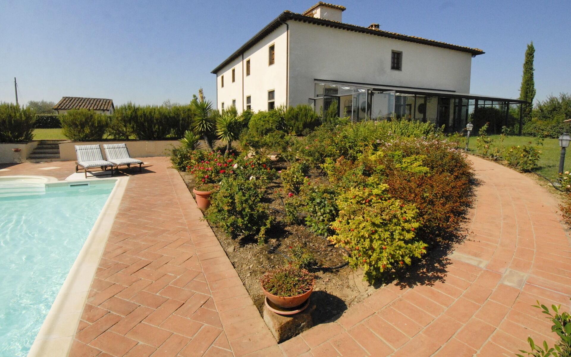 Diese Villa ist ein besonderes Beispiel für die Fähigkeit, die wichtigsten architektonischen toskanischen Traditionen und ursprünglichen Merkmale dank einer klugen Restaurierung beizubehalten: Terrakottaböden, Steintüren und -fenster, freiliegende Holzbalken und Ziegeldecken wurden unter Verwendung der ursprünglichen Materialien des Gebäudes restauriert .