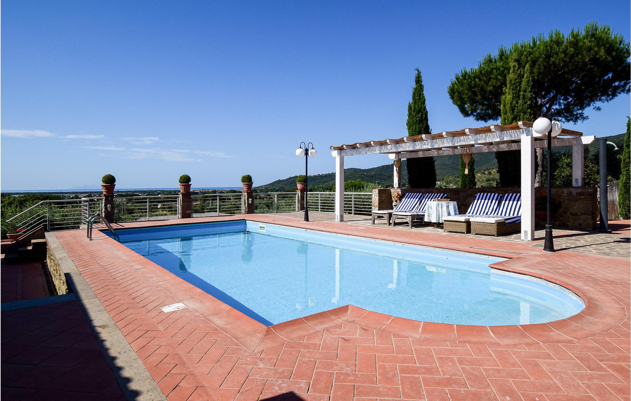 Dette rolige feriehus bliver jeres personlige oase af velvære på den toscanske kyst. Flyt ind i det hyggelige hus sammen med jeres familie - her er al den komfort, I har brug for til ferien. I finder rigeligt med plads både indendørs og udendørs. I haven venter jer en indbydende pool til at slappe af og køle ned på de varmeste dage. Udnyt de solbeskyttede sidde- og loungeområder på terrassen, som giver jer alle muligheder for at slappe af. Herfra kan I se ud i det fjerne og se helt til havet.