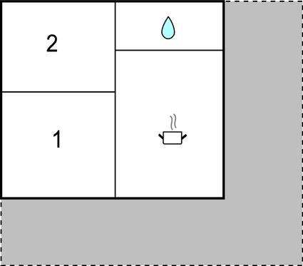 Badeværelse 5m2 (nr. 1) - WC. Varmt og koldt vand. Bruser