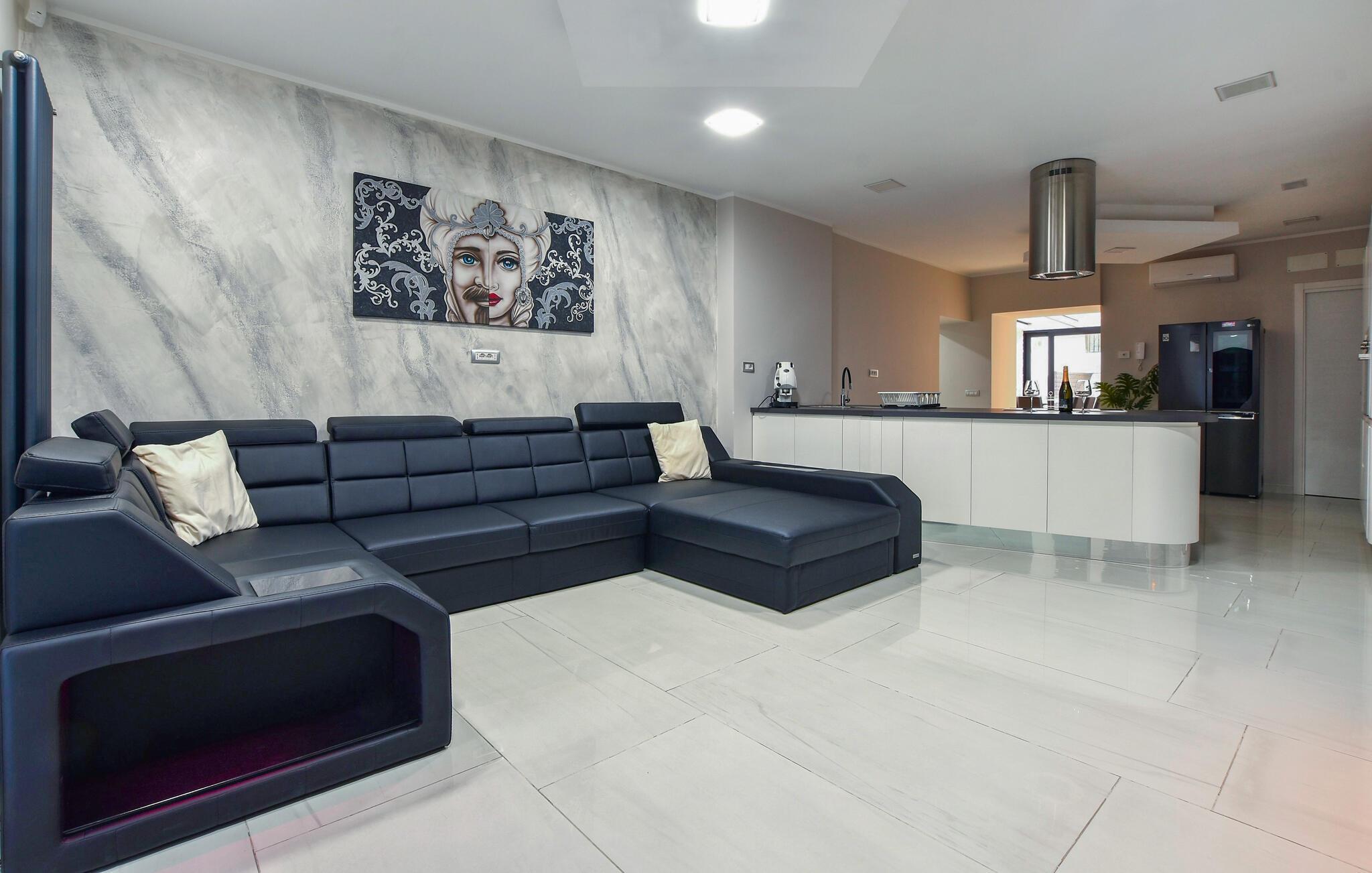 Dette rummelige hus kombinerer stilfuldt design med italiensk charme og har alt, hvad I skal bruge til en afslappende ferie på to lyse etager. Materialer af høj kvalitet, omhyggeligt udvalgte møbler og en moderne pejs skaber en eksklusiv atmosfære i stuen. Læn jer tilbage i udestuen, mens den private gårdhave med pool og haveområde er et ideelt sted at spise, spille spil eller slappe af – et sandt tilflugtssted i hjertet af byen.