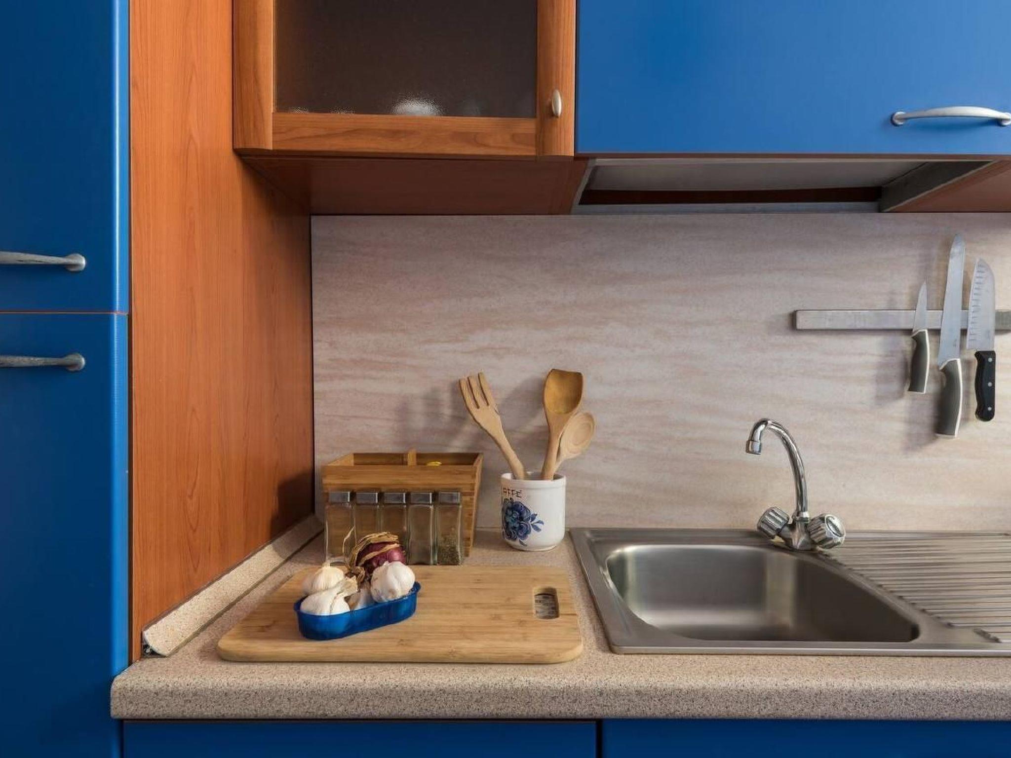 The flat consists of an open-plan entrance/living room with dining area, where there is a double sofa bed. On the same floor there is a kitchen and a balcony with a direct view of the medieval castle.