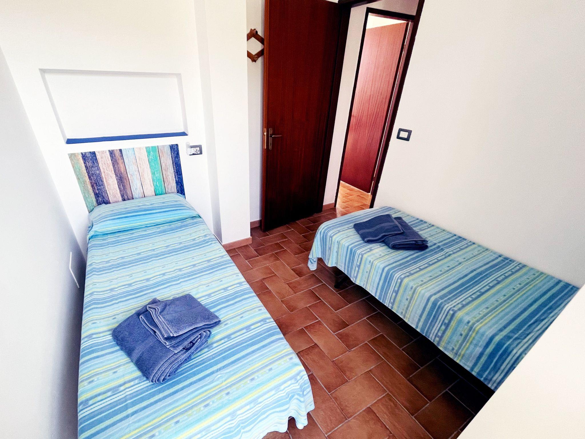 Two-room apartment with double bed, twin room, bathroom with shower, kitchen and furnished veranda. Air-conditioned and with use of swimming pool. Located next to the swimming pool and surrounded by lawn and greenery. Free parking inside the building and free internet access in shared areas.