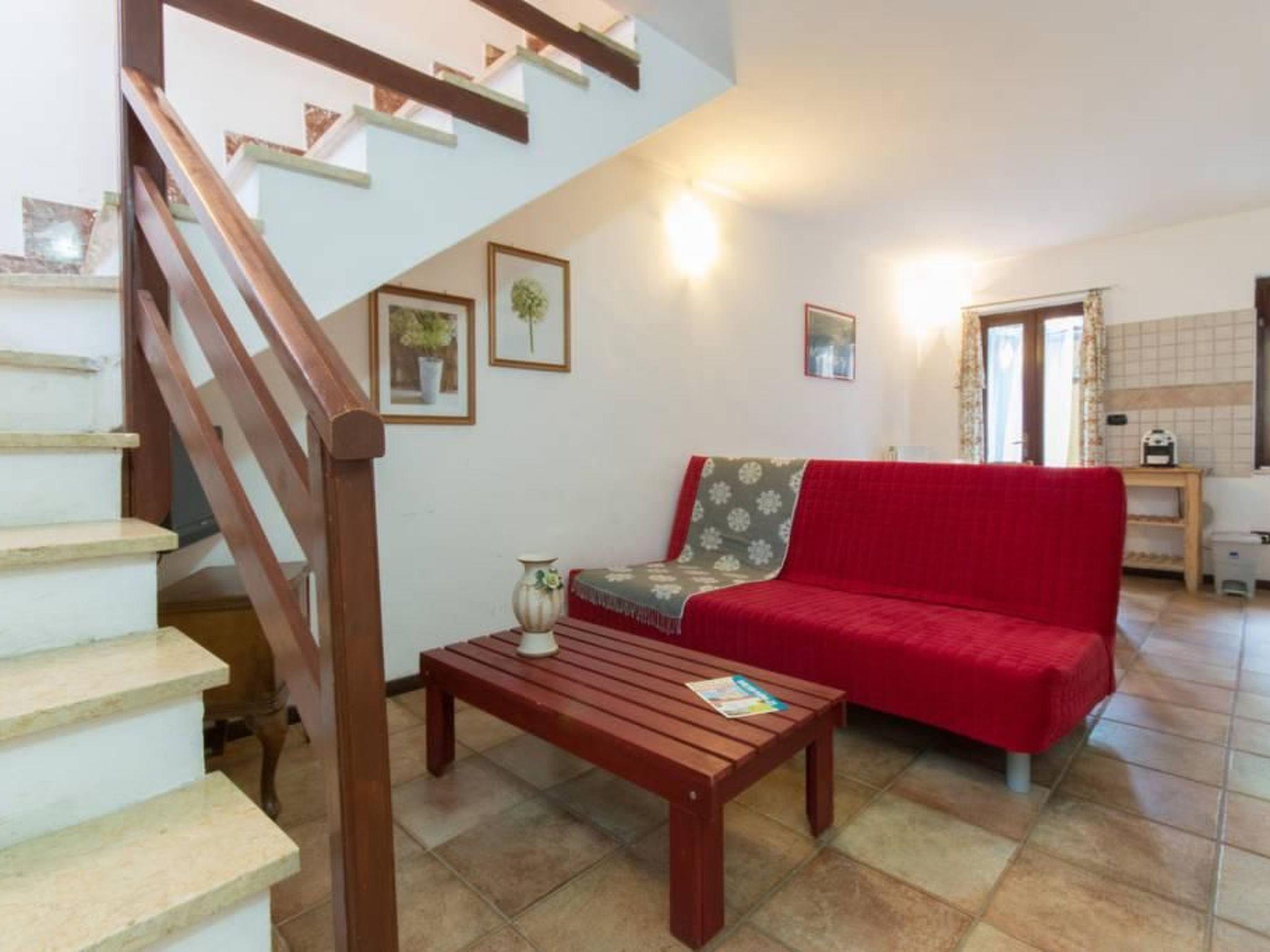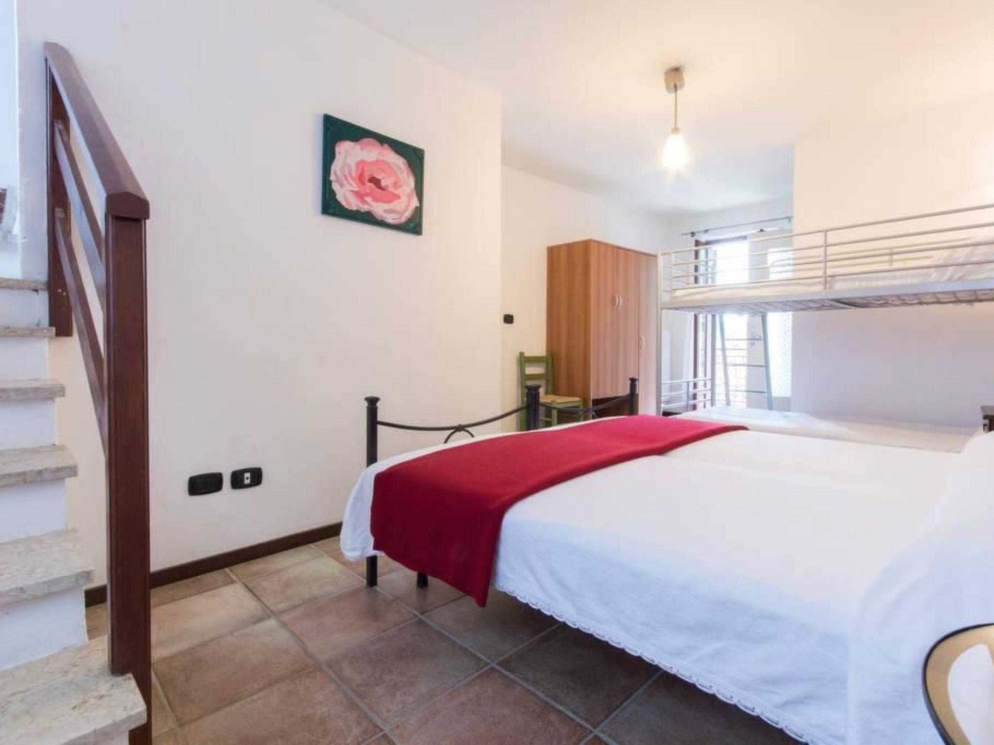 The accommodation on three floors is so provided: ground floor large living room with kitchen, sofa bed and balcony, first floor bedroom (or 2 singles) and a single bed, bathroom with shower and balcony, third floor with double bed bathroom. The apartment is equipped with television, the furnishings are of value and windows with screens.