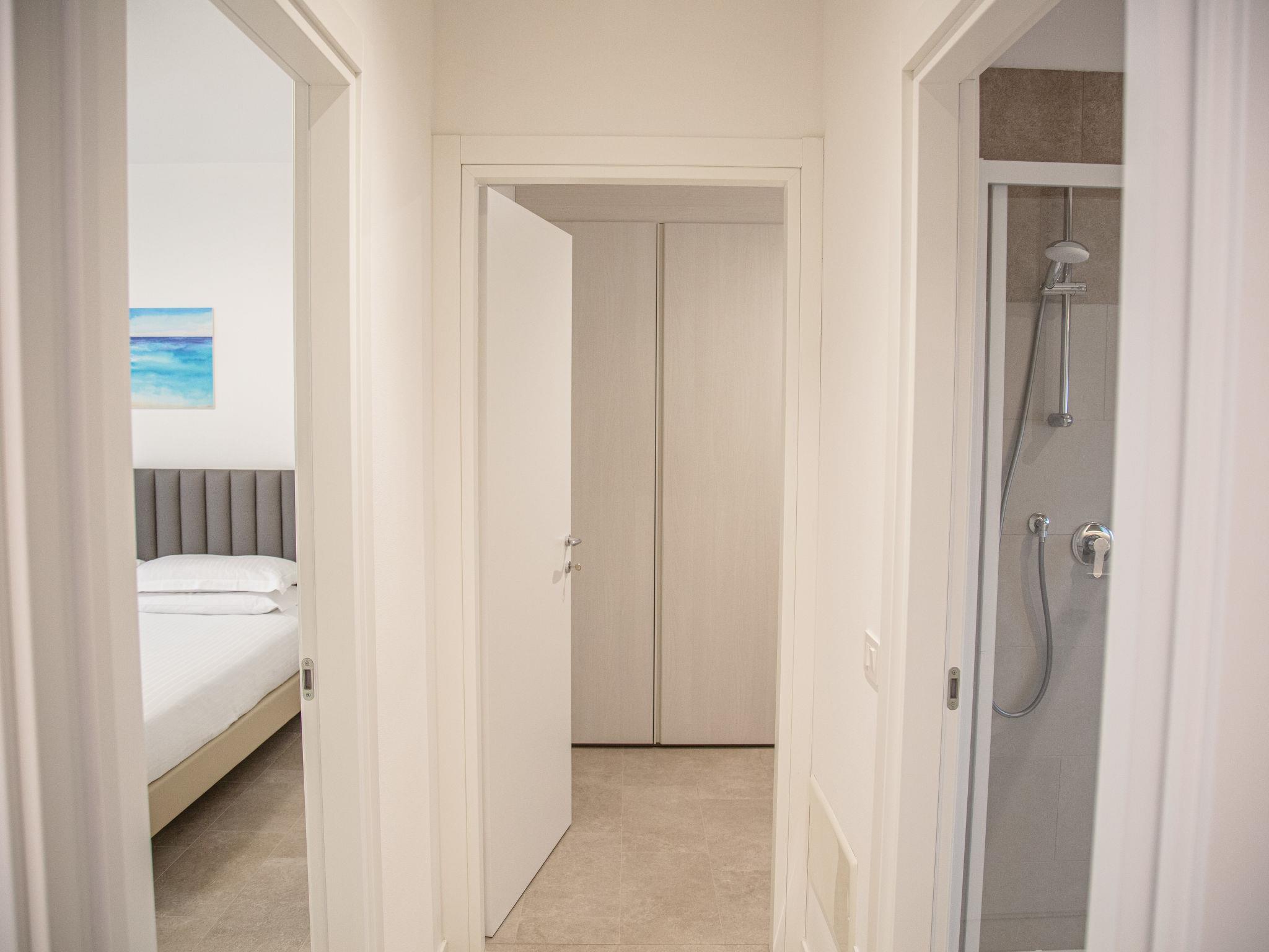 Modern residence "Green House", 2 storeys, built in 2024. 12 apartments in the residence. In the district of Ca' Pasquali 4.3 km from the centre of Cavallino-Treporti, 12 km from the centre of Lido di Jesolo, 7 km from the centre of Punta Sabbioni (boat to Venice), 100 m from the sea, 100 m from the beach. Breakfast full board half board possible on request (extra). Communal covered parking at the house. Bus stop 900 m. The photo is just an example. In the nearby Camping Village Cavallino (same owner) our guests may use their pools (23th May-15th Sept., bathing caps are mandatory) and take part in the animation programme for adults and children from 5 years (1st June-30th Aug.) for free, whereas the Spa is against payment. All the guests have to wear a wristband for identification.