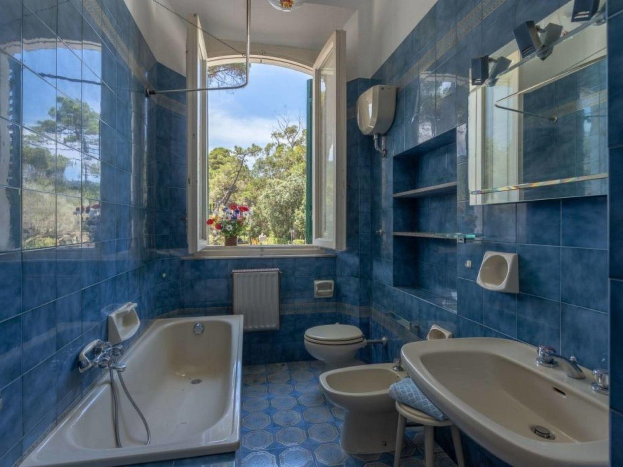 Via the terrace you come into the opulent living room, which is equipped with a sofa bed for two people and offers a view of the sea in both east and south directions. From here you can access the fully equipped kitchen, which also has access to the terrace. The two bedrooms are connected via the corridor. One with a double bed and en-suite bathroom with tub. The other has two single beds and has its own external bathroom with shower. Villa Bensa is particularly suitable for families with children or two friends who are looking for a very special accommodation for their holiday by the sea on the island of Elba and who appreciate the direct access to the sea as much as the stately architecture of the house and the tranquility of the place.