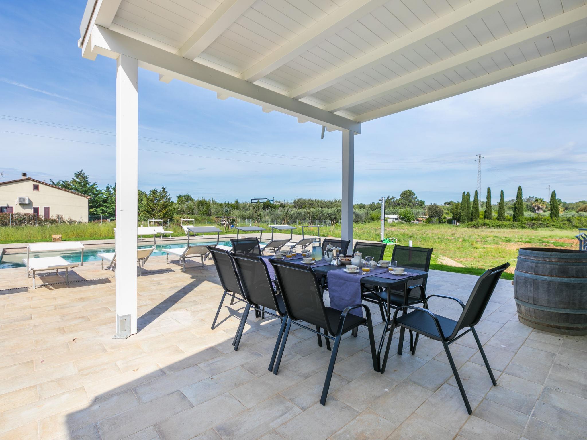 Modern, beautiful single-family house "Veronica", 2 storeys, built in 2023, surrounded by trees and fields. 3 km from the centre of Cecina, 6 km from the centre of Marina di Bibbona, 3 km from the sea, 3 km from the beach. Private: property 1 ha (fenced), natural garden, swimming pool (10 x 5 m, depth 90 - 150 cm, seasonal availability: 20.Apr. - 10.Oct.). Barbecue, pool maintenance by the owner/gardener. In the house: table tennis, table football, washing machine. Linen change (suppl. charge extra). Towel change (suppl. charge extra). Parking at the house. Shop 1.2 km, grocery 1.2 km, supermarket 2.7 km, restaurant 1.2 km, bakery 1.2 km, bus stop "V. Della Macchia, Aurelia" 200 m, railway station "Cecina" 5 km, sandy beach "Marina di Cecina" 4.5 km. Nearby attractions: Bogheri 12 km, Pisa 60 km, Lucca 90 km, Firenze 120 km. The owner does not accept any youth groups. Please note: main road close by 100 m from the property.