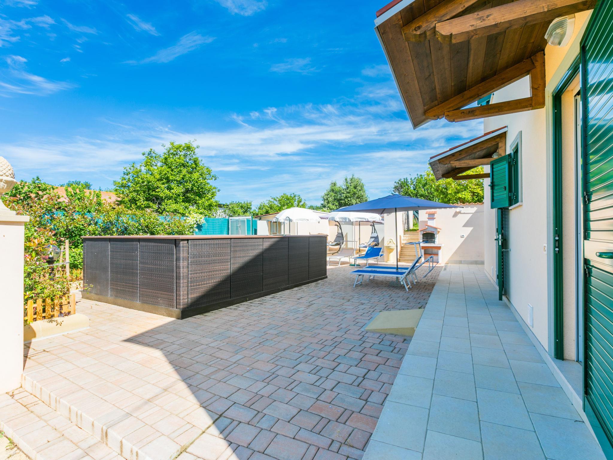 4-room house 110 m2 on 2 levels. Fully renovated in 2024, beautiful and modern furnishings: living/dining room with dining table. Exit to the terrace. 1 room with 1 double sofabed and TV. Exit to the garden. Open kitchen (oven, dishwasher, 4 induction hot plates, toaster, kettle, electric coffee machine). Exit to the terrace. Shower/bidet/WC. Electric heating, air-conditioning. Upper floor: 1 double bedroom with TV. 1 double bedroom with 2 beds. (ladder) gallery. Shower/bidet/WC. Electric heating, air-conditioning. Large terrace 35 m2 partly roofed. Barbecue, deck chairs (6). Facilities: washing machine, iron, mosquito net, children's high chair, baby cot for up to 2 year olds, hair dryer. Internet (WiFi, free). Parking (roofed, fenced 2 cars). E-charging station. Please note: maximum 2 pets/ dogs allowed. Private entrance, fire extinguisher. complete outdoor kitchen (2 plates, microwave, dishwasher, washing machine, fridge). IT050030C2VXQG94XA