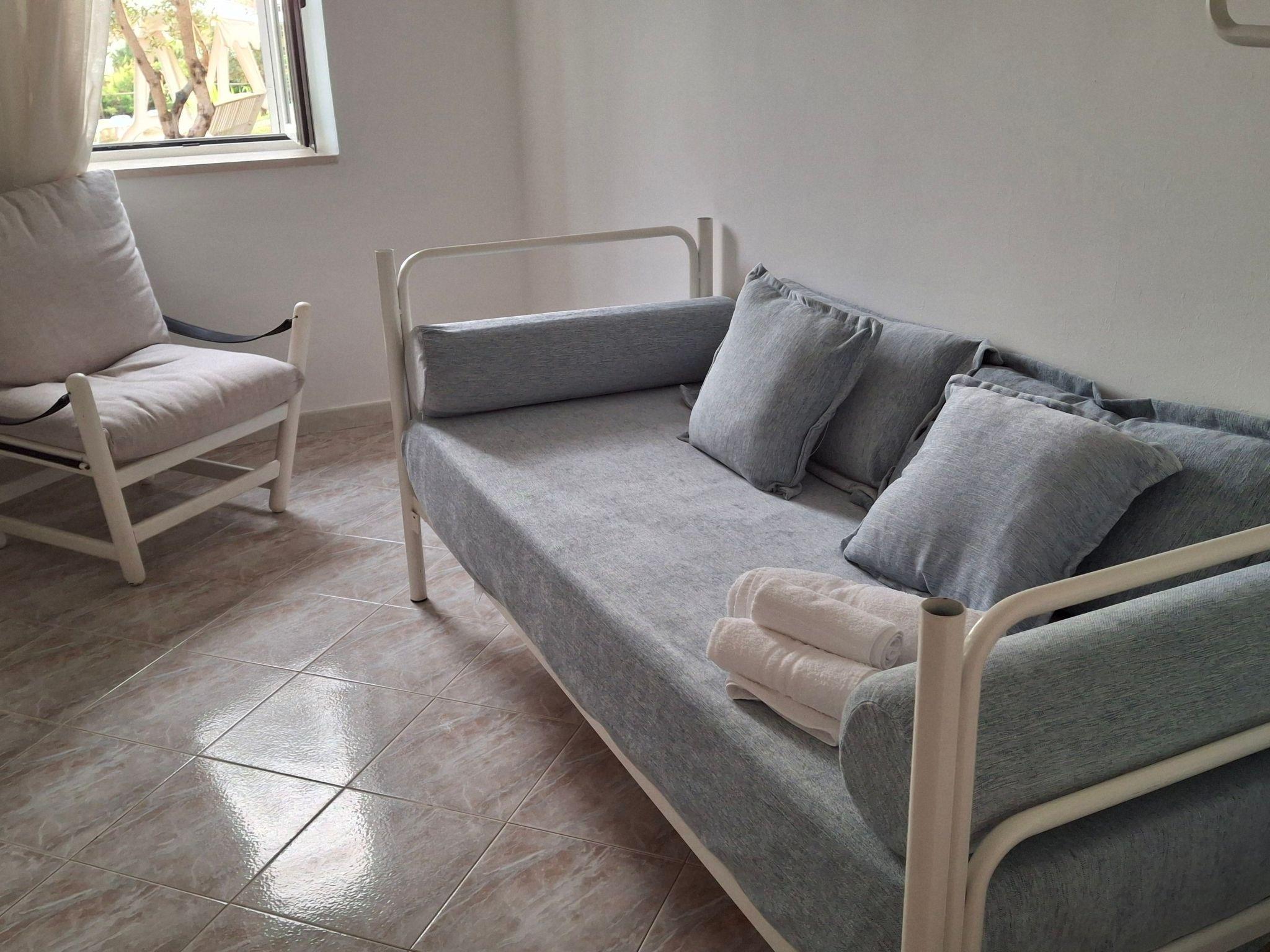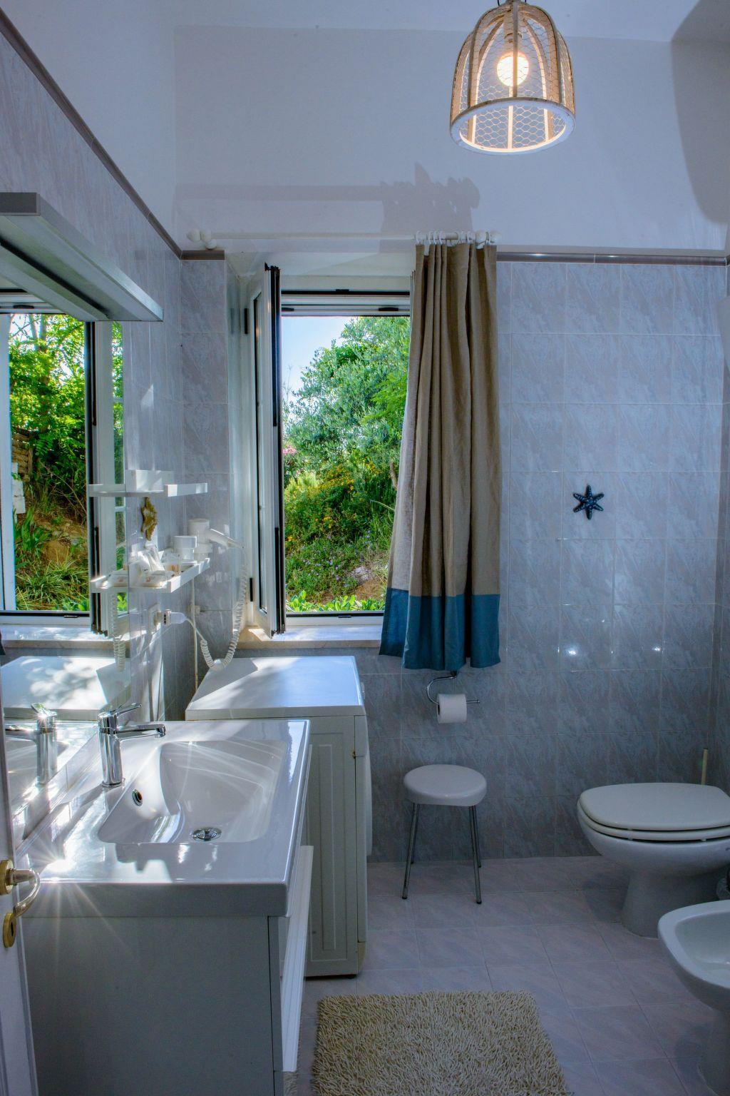 Once inside the villa, the blue of the sea is reflected in the furnishings that characterise this exclusive building. From the large living room with sofa, covered with soft cushions, one can see the sea. It will be a pleasure to have meals with a magnificent view of the blue sea. The fully equipped kitchen is equipped with oven, fridge and dishwasher. The refined majolica tiles on the hob reflect the sun's rays and illuminate the room. To enjoy a midday nap and above all to recharge your batteries after a beautiful day at sea, the villa has two elegant bedrooms with double beds. One of the rooms is also equipped with a single bed so that the rest of a child can also be controlled. A third room with a single bed is ideal to accommodate the rest of a child on holiday with the family. The villa has two bathrooms with shower and washing machine.