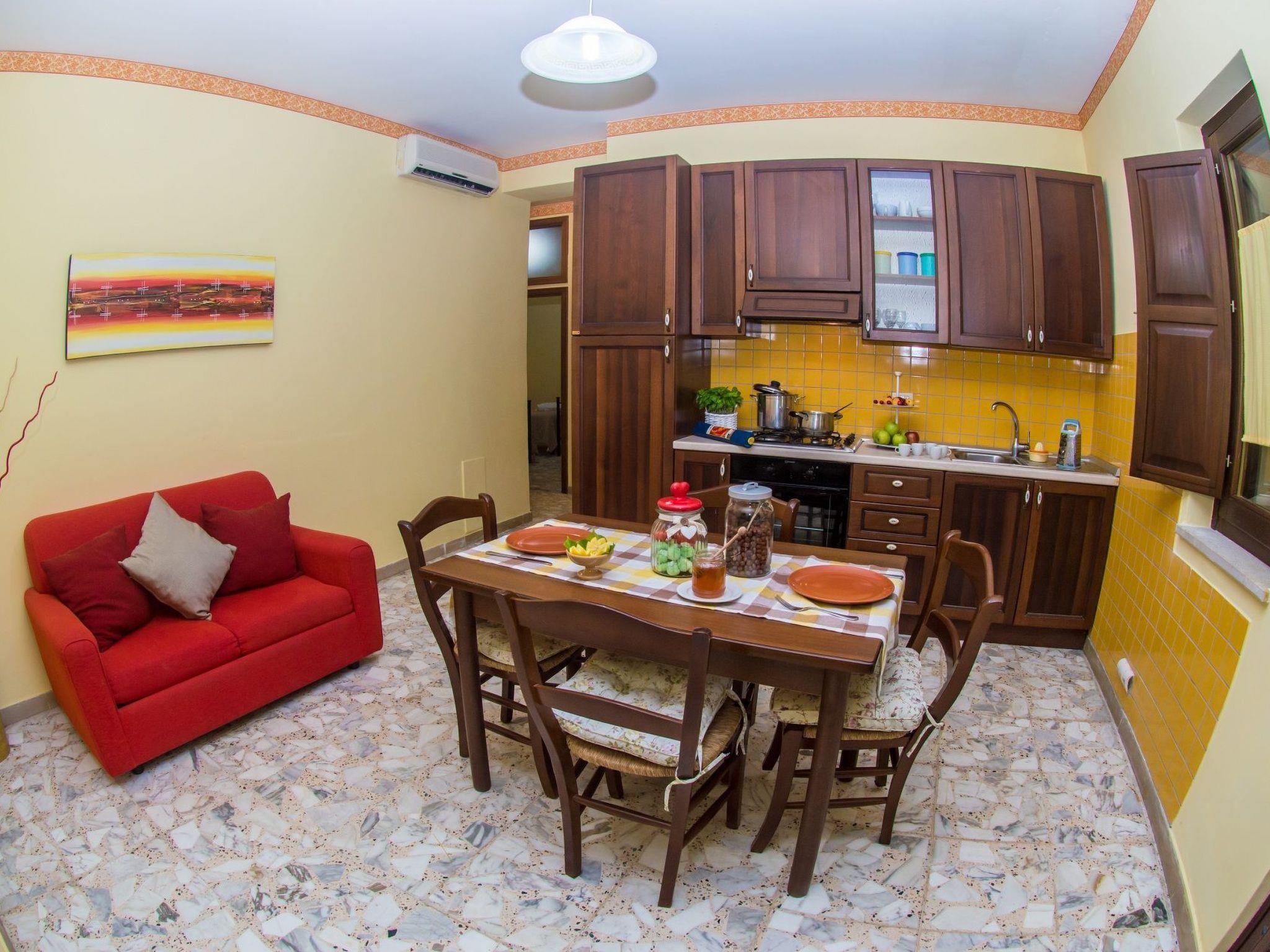 This apartment type has a living room with a kitchen, and two bedrooms. One has a double bed and the other has two single beds, which can also be joined together. Three supplementary single beds can be provided on request. The spacious accommodation is ideal for a family or for two couples. This apartment type is either on the ground floor, the first or the second floor.
