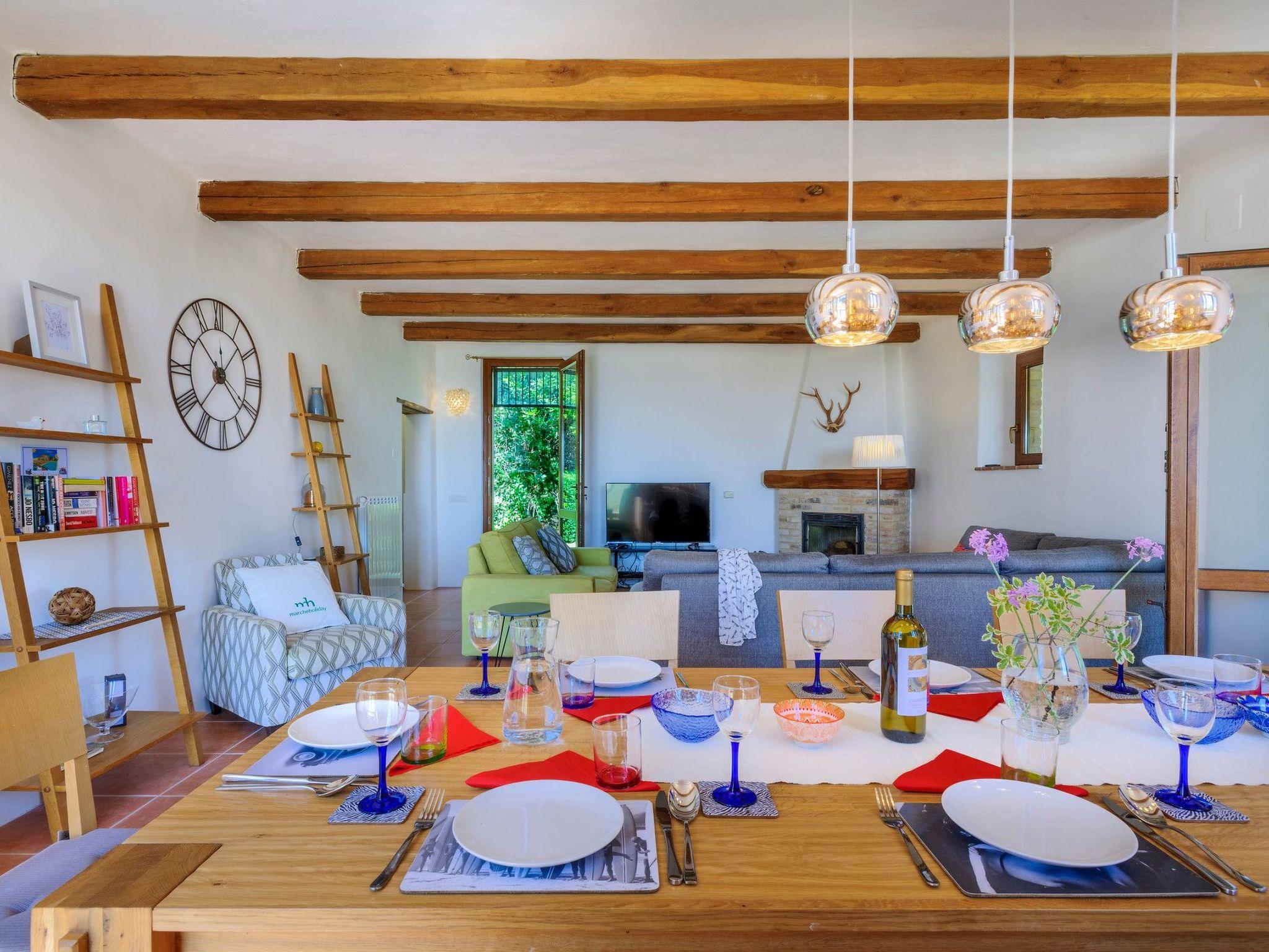 On the ground floor, we find a large and bright living room with a dining area that overlooks the loggia equipped for eating and relaxing outdoors and equipped with a wood-burning oven. The well-equipped kitchen has a direct exit to the outside, then we find a double bedroom with air conditioning, a bathroom with shower and a laundry room. On the first floor there are 3 double bedrooms and 2 bathrooms, one with a shower and one with a bathtub.