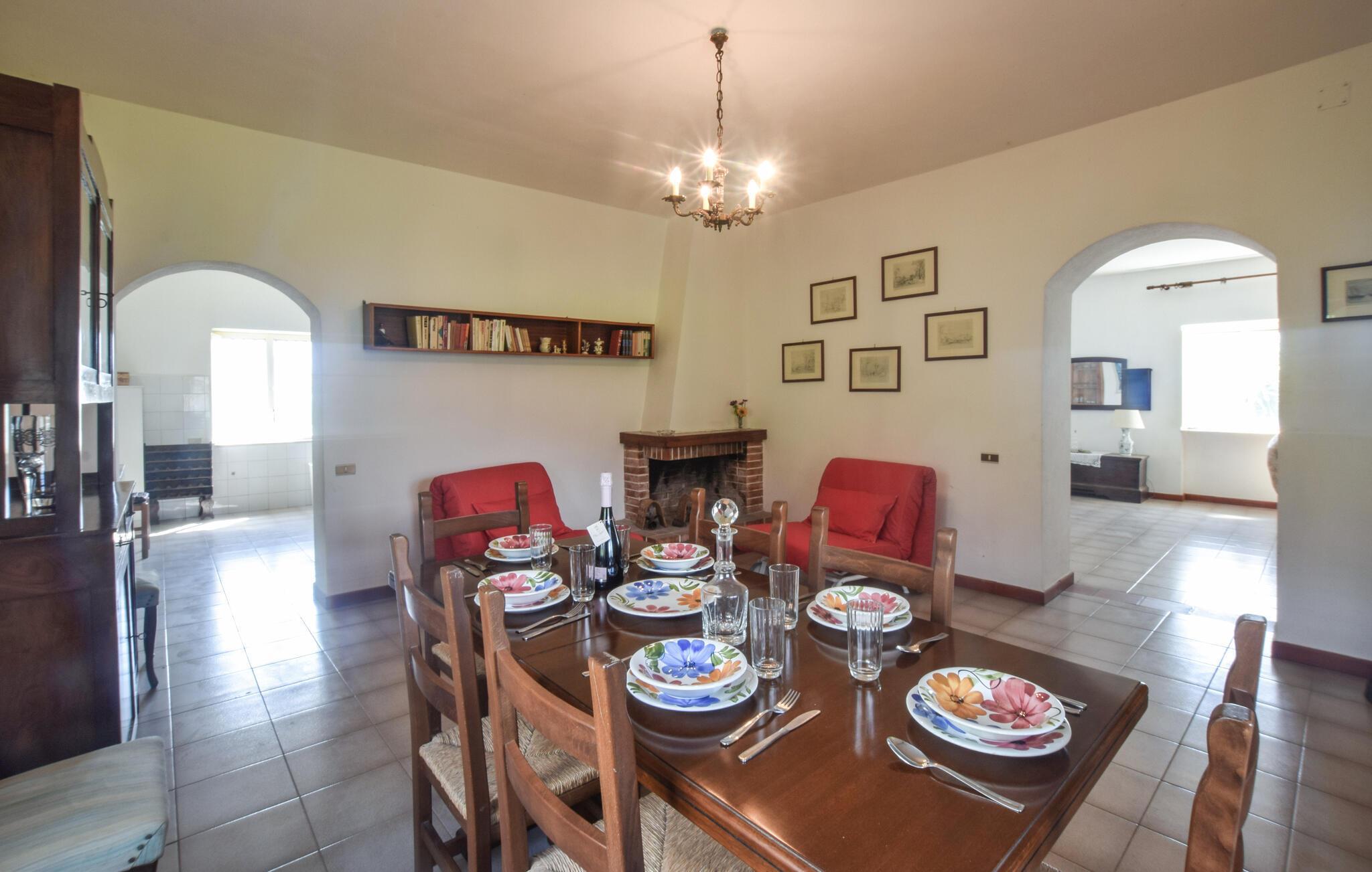 Velkommen til dette indbydende stenhus, der har en fantastisk beliggenhed og en vidunderlig panoramaudsigt over bjergene. Med sine mange kvadratmeter og flotte, rustikke indretning er der lagt op til en helt særlig boligoplevelse, hvor I virkelig kan sænke skuldrene og bare slappe af. På de køligere dage kan I tænde op i pejsen og nyde den varme knitren, mens I laver mad i køkkenet, spiller brætspil eller bare hygger med et godt glas vin i sofaen efter en aktiv feriedag.
