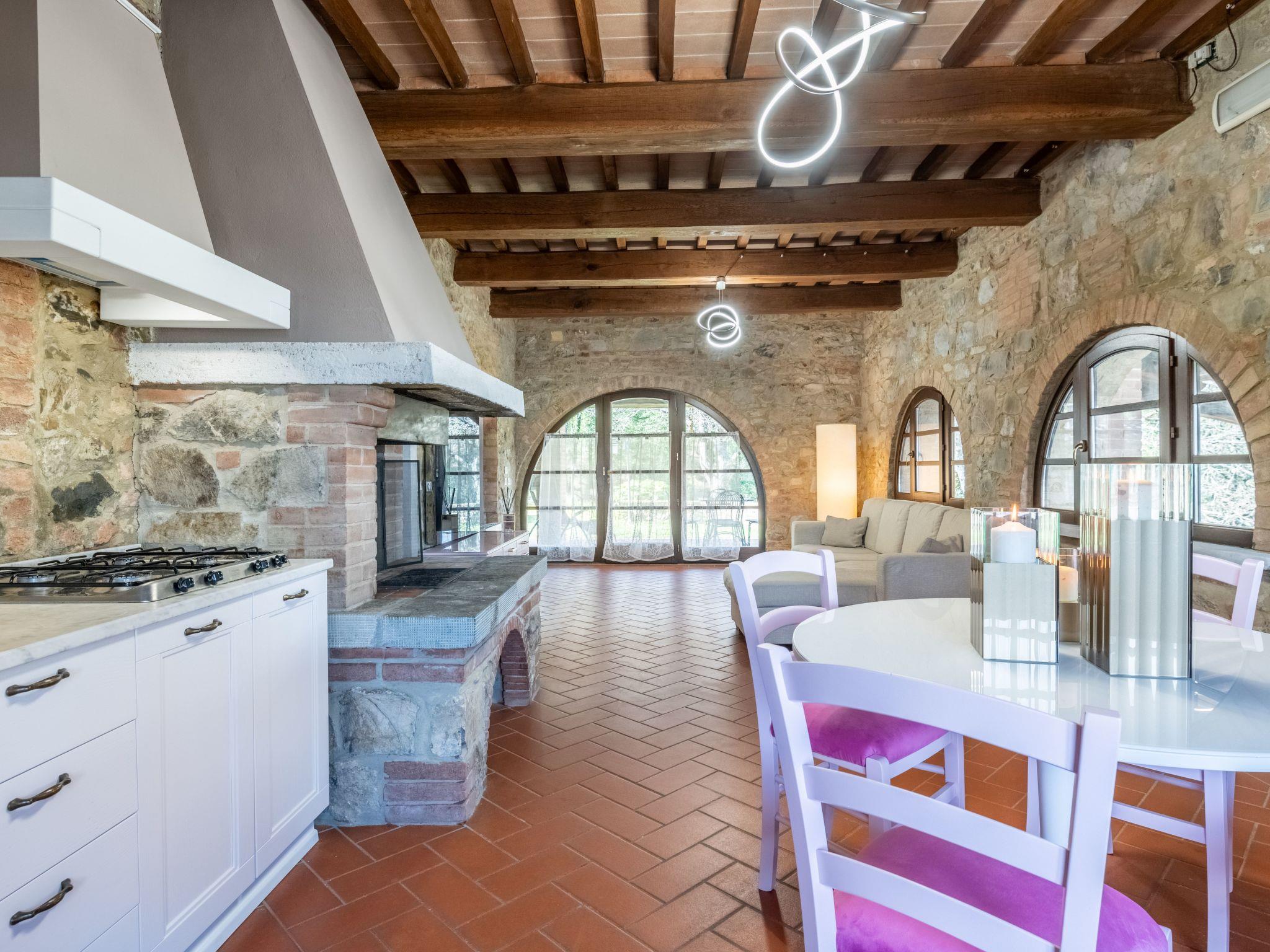 A hidden gem in the Tuscan rolling countryside, raised 350 metres above sea level, Le Polle di Meletro, also known as "Il borgo della pace" with its fantastic panoramic terrace, woodlands and enviable position, resides near the small medieval village of Rivalto. With stunning views down the Valdera valley, the prominent location of the villa has maintained a sense of timelessness, peace and tranquillity. It is an oasis of calmness and harmony in which to indulge yourself and relax, but yet it is only 40 minutes’ drive from Pisa airport.The villa is surrounded by fertile soil that produces a range of superior vegetables, fruits and wine. The nearby fields are host to vineyards, olive groves, fruit trees and cereals, whilst the wooded hills are home to the famous ‘Rivalto’ Chestnut along with a rich selection of flora and fauna. The nodding heads of large sunflowers fill some of the fields in July/August setting the landscape ablaze. The view from our terrace and woodland changes as the seasons change, being green and lush in spring through to a golden yellow in summer before becoming a sea of blazing red as the vines change colour in the autumn months.