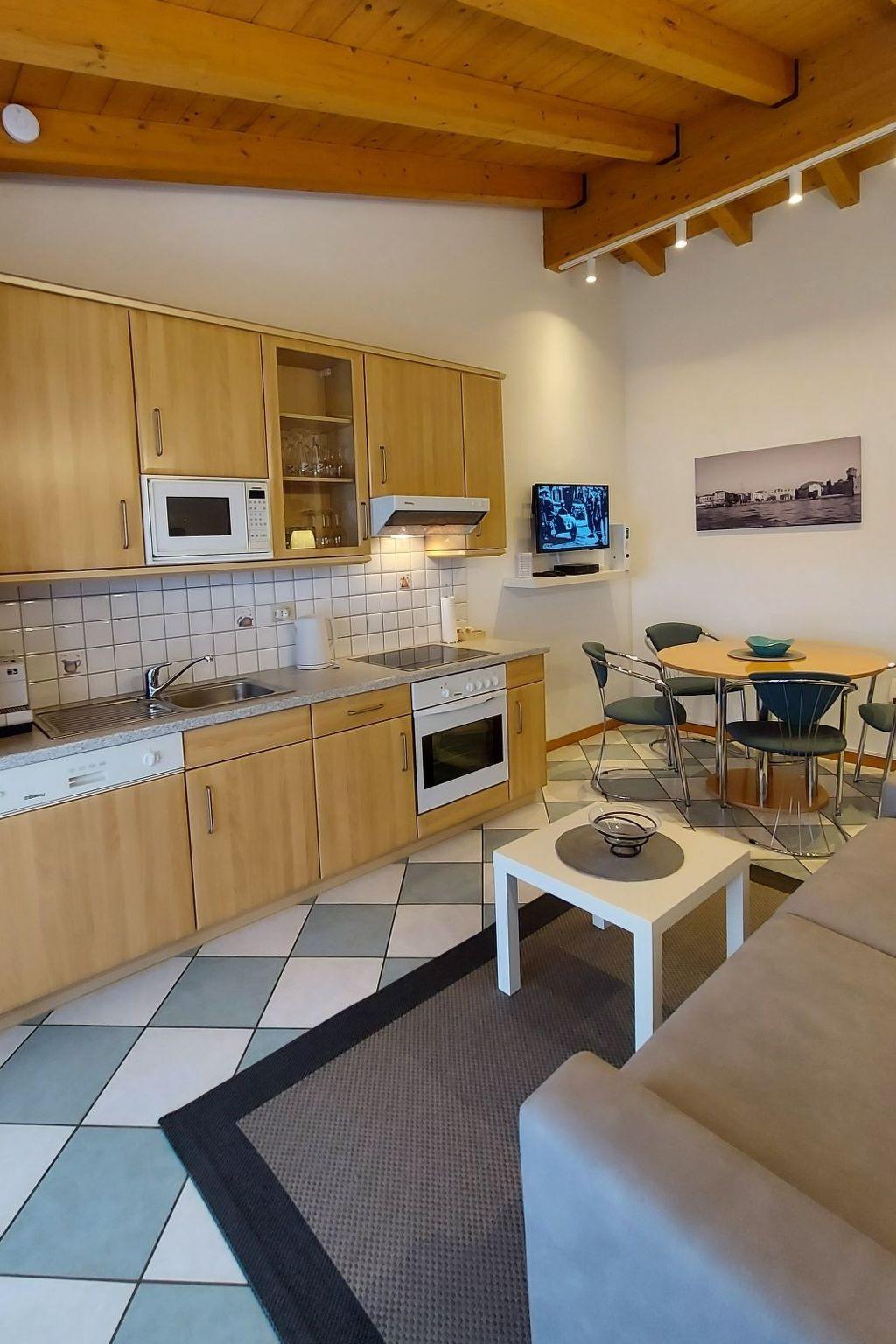 The interior design of the flat leaves nothing to be desired. A living room awaits you, skilfully combined with a well-equipped kitchen and a high-quality double sofa bed for relaxing evenings. The bathroom is bright and friendly, with a window and shower/WC, while the bedroom has a cosy double bed and access to a north-facing balcony. There is a delightful children's room with a bunk bed for younger guests. Also worth mentioning are the modern air conditioning, heating, a flat-screen satellite TV, WLAN, a safe and other amenities to make your stay comfortable.