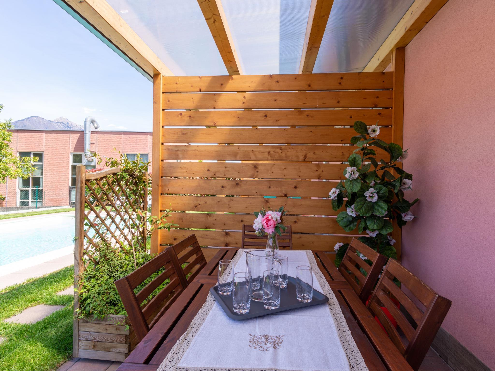 Modern terraced house "Gelsomini", built in 2016. In the district of Curcio 2 km from the centre of Colico, 42 km from the centre of Lecco, 72 km from the centre of Como, in the residential district, 2 km from the lake. For shared use: property 1'000 m2 (fenced) with meadow, swimming pool (8 x 4 m, depth 145 cm, seasonal availability: 30.Apr. - 30.Sep.) with salt-electrolysis pool-cleaning system. Outdoor shower, barbecue, parking at the house at 50 m public parking 100 m. Shop 400 m, supermarket 700 m, bus stop 350 m, railway station "Colico" 1.6 km, pebble beach 2.7 km, grass beach 2.7 km. Golf course (18 hole) 35.5 km. Please note: car recommended. Additional accommodations can be booked. Property ref. IT2440.624.2+3 is situated on the same property. The complex has another 2 houses for rent. There is a carpenter's workshop nearby (mostly for selling).