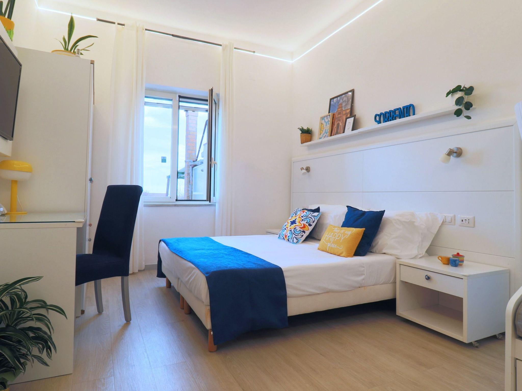 The rooms at La Terrazza Family Holidays are spacious and bright, all with large windows or terraces, opening up to guests a splendid view of the Gulf of Naples or the surrounding hills and the blue sky and sea.