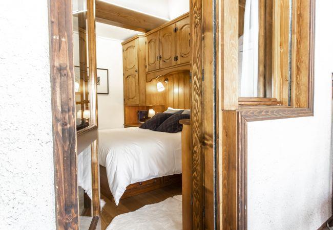 This 70 sqm apartment in typical Ampezzo style in Cortina d'Ampezzo can accommodate 6 people. It has two bedrooms, one with a double bed and one with a bunk bed, and there is also a double sofa bed in the living area.