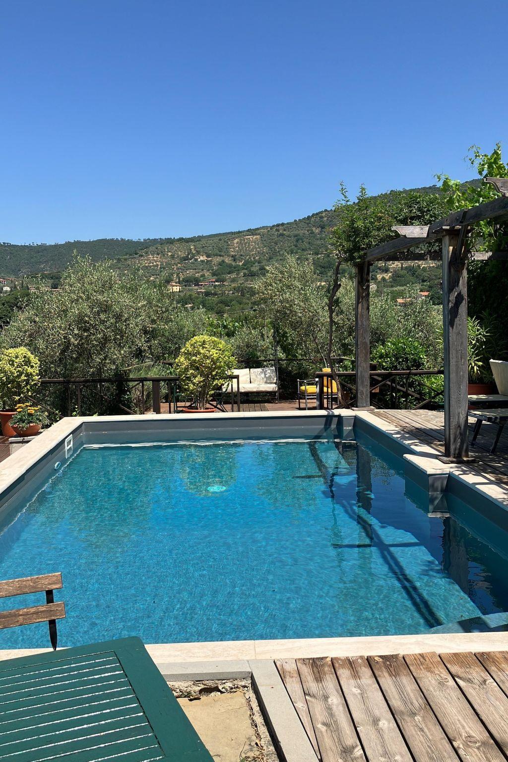 From the entrance door, on the left-hand side there is access to the sitting room with fireplace while on the right-hand side there is access to the Sala della Pastaia whose name derives from an old piece of furniture which today contains various objects but which was used to dry pasta! Today it is a large and spacious dining room where guests can spend moments of convivial serenity Also on the ground floor is a new and comfortable kitchen equipped with everything a good chef would wish to have as tools of the trade.A staircase made of pietra serena, typical of the Cortona area, leads to the first floor where the sleeping area is accessed. Each room has been created following a different theme that differentiates them from one another. At the back of the house, surrounded by greenery and olive trees, is the private swimming pool. Sheltered from prying eyes and not visible from the entrance, the particular position chosen guarantees plenty of sunshine, peace and intimacy. The flooring used for the exterior is teak, which does not heat up in the sun and allows you to walk barefoot or sit on the edge or on the ground without the danger of getting burnt.