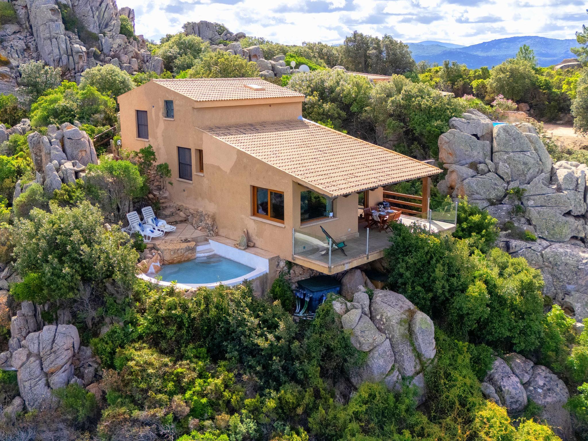 Comfortable villa "Petra Blu", detached. In the hamlet Costa Paradiso, in a quiet, sunny position on top of a hill, 4 km from the sea, 4 km from the beach, in a cul-de-sac. Private: natural state property, swimming pool round (16 m2, depth 150 cm, seasonal availability: 01.May. - 17.Oct.). Motor access (via unmade road). Parking at the house. Grocery 2.5 km, supermarket 2.5 km, restaurant 2.5 km, bus stop 6 km, sandy beach "Li Cossi" 5 km. Nearby attractions: Isola Rossa 18 km, Vignola mare 18 km, Aquafantasy 16 km, Santa Teresa 38 km, Alghero 107 m. Please note: car recommended. Animals in the neighbourhood.