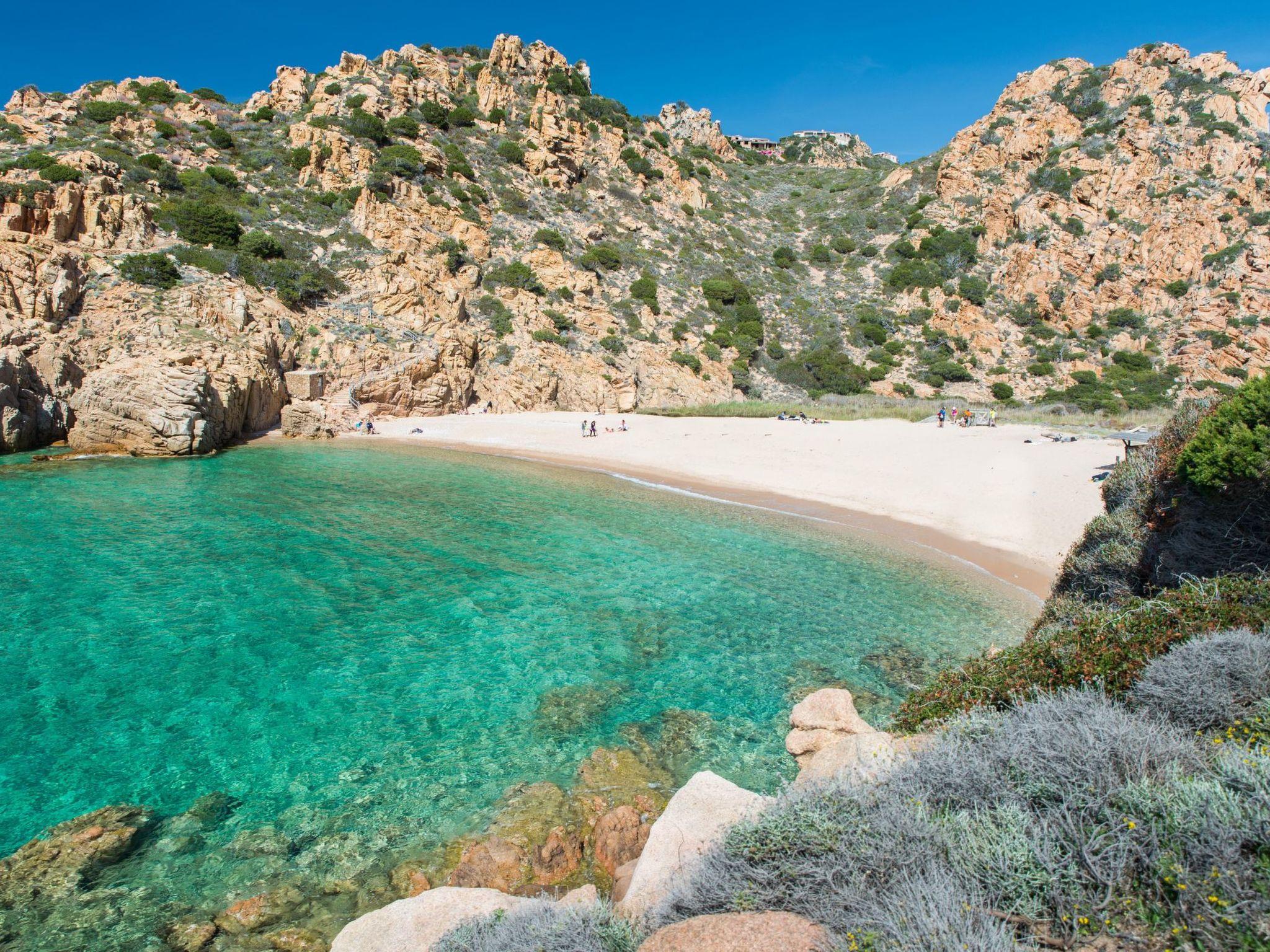 The holiday house is just 900 metres from the sea, nestled into the lush green landscape of the Costa Paradiso.