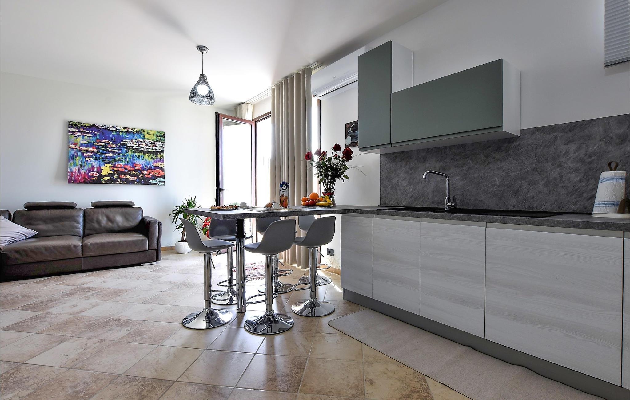 Tilbring en afslappende ferie med familien i dette skønne og moderne feriehus. Lejligheden giver jer plads til at slappe af og nyde de komfortable møbler. Udsigten over havet, som I kan nyde fra boligens terrasse, er særlig smuk. Afslut aftenen her med en kølig drink og et spil kort.