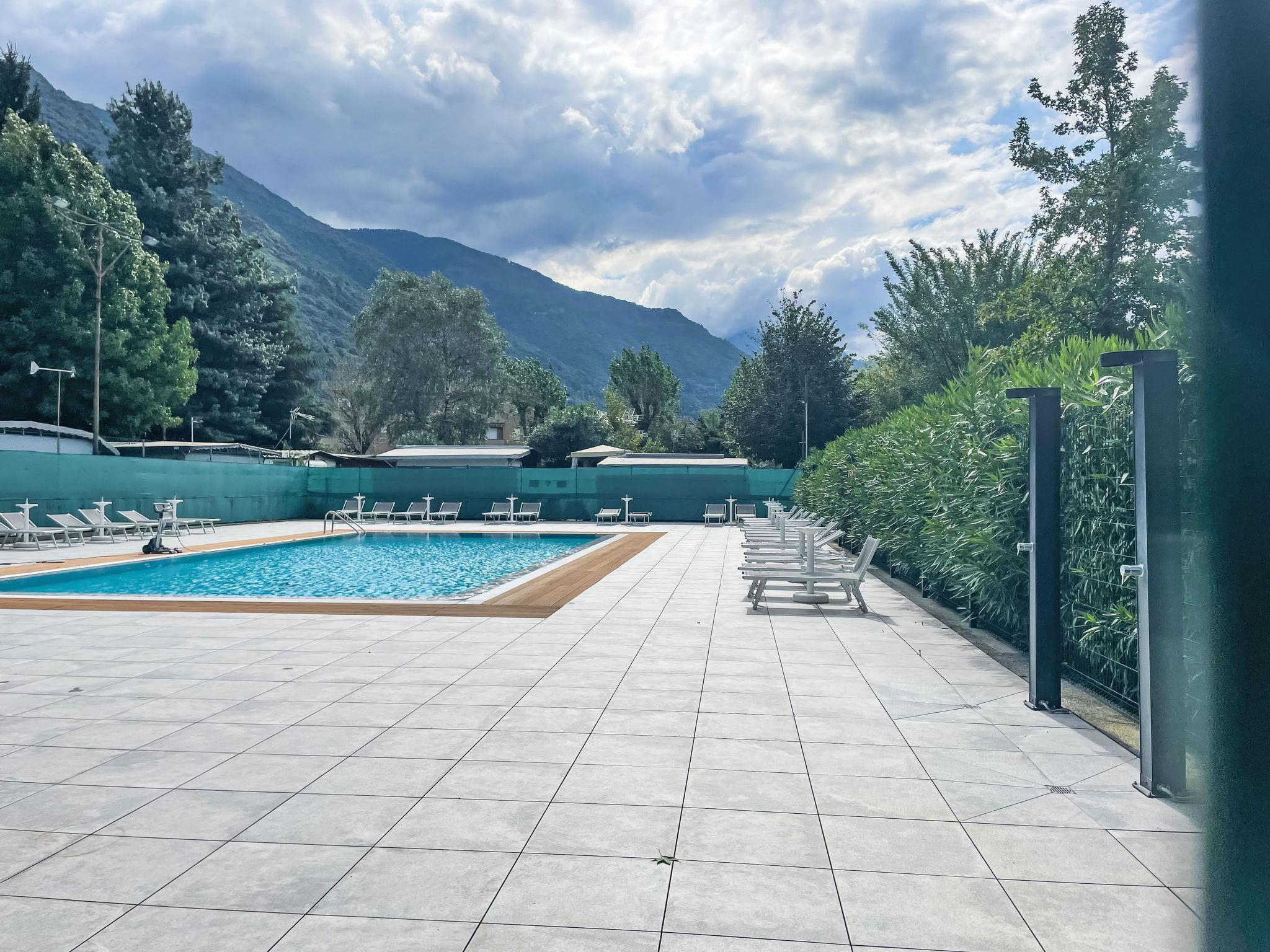 Comfortable on a campsite "Camping Turisport", 2 storeys, built in 2024. In the resort Dervio, 32 km from the centre of Lecco, 86 km from the centre of Mailand, 50 m from the lake. For shared use: property 32 ha (fenced), swimming pool fenced (15 x 7 m, depth 140 cm, seasonal availability: 01.Jun. - 15.Sep. pool opening hours: 09:30-12:30 and 14:30-18:30). Table tennis, patio, children's playground. In the house: reception, bar, bicycle rental. Linen change (suppl. charge extra). Towel change (suppl. charge extra). Room cleaning on request (extra). Parking. Supermarket 800 m, bakery 750 m, bicycle rental 10 m, bus stop 1 km, railway station 1.2 km, shingle beach 950 m. Sports harbour 950 m, surf school, sailing school 20 m, tennis 10 km, walking paths from the house 2 km, children's playground 400 m. Nearby attractions: Torre di Orezia, Corenno Plinio, Castello di Vezio Varenna, Chiesa di San Pietro a Dervio. Well-known ski regions can easily be reached: Madesimo, Aprica, Valchiavenna. Well-known lakes can easily be reached: Lago di Mezzola. Hiking paths: Monte Basso di Dervio, Monte Legnoncino. Please note: no lift. Obligation to wear bathing caps.