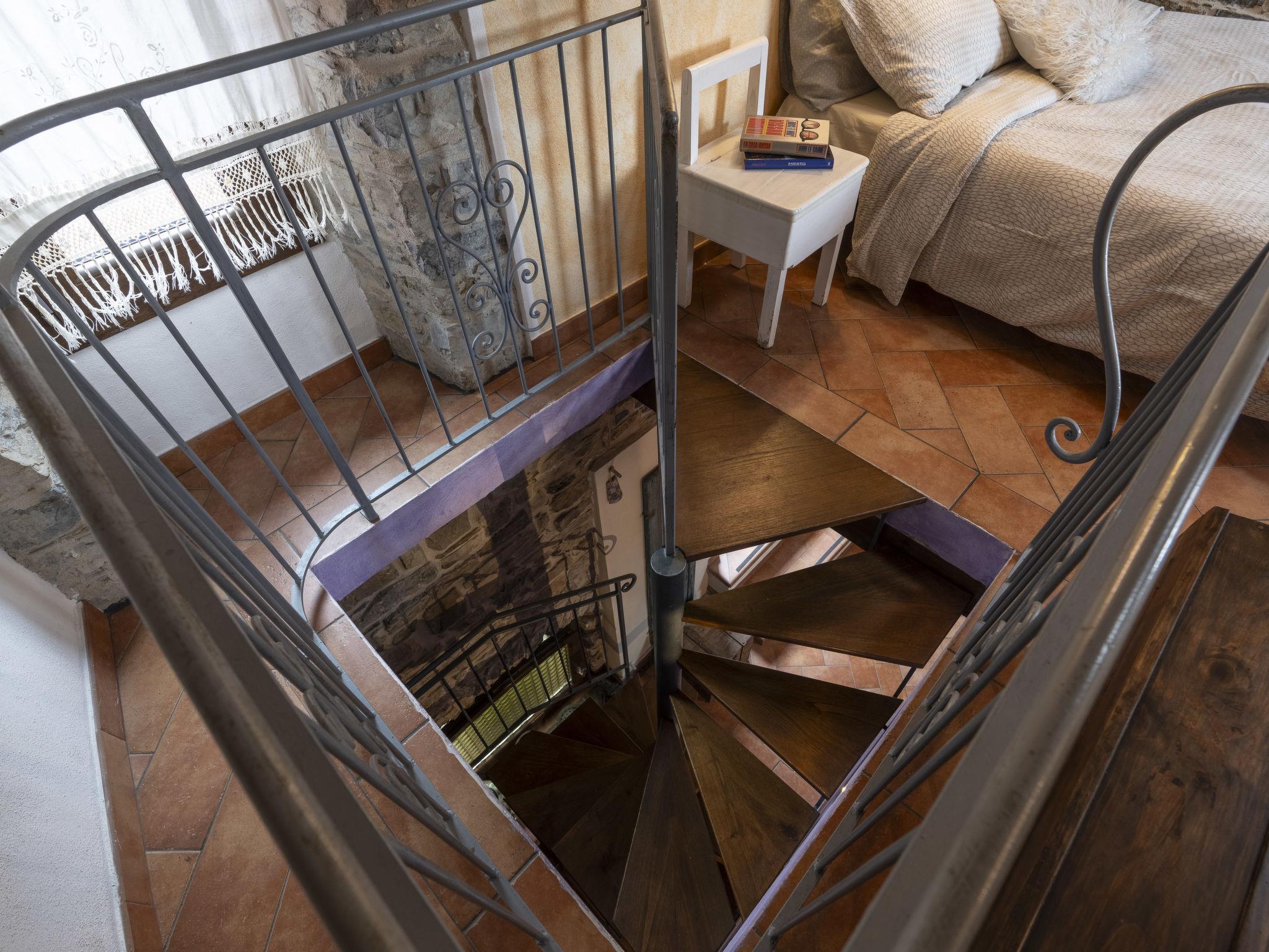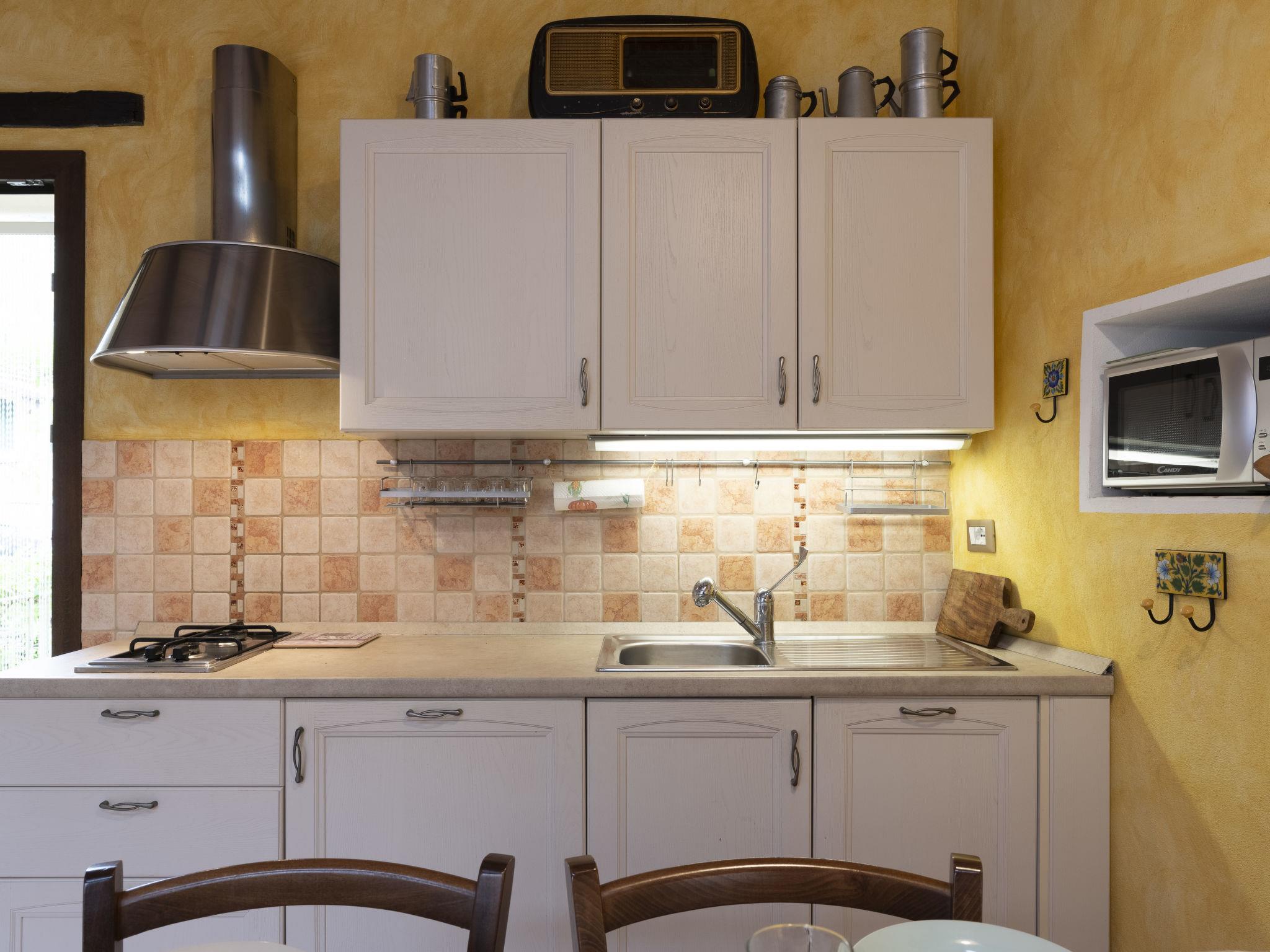 "La vecchia Stalla", 3-room semi-detached house 70 m2, on the ground floor. Comfortable and cosy furnishings: living/dining room with 1 sofabed (140 cm, length 200 cm), TV. Exit to the garden. Kitchen-/living room (dishwasher, 2 gas rings, toaster, kettle, microwave). Exit to the garden. On the lower ground floor: (spiral staircase), 1 double bedroom. Exit to the balcony. Shower/bidet/WC. No heating option. Natural stone floors. Balcony 6 m2. Terrace furniture. View of the sea and the resort. Facilities: washing machine, hair dryer. Internet (WiFi, free). Please note: maximum 1 pet/ dog allowed. Private entrance. IT008025C2FQMHOT7W