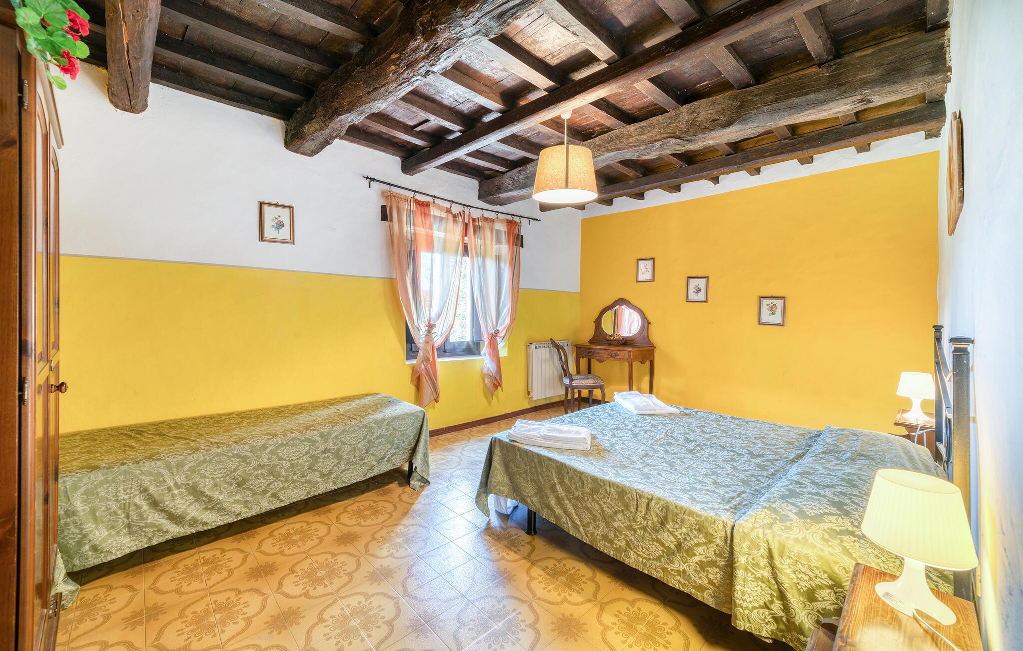 Dette charmerende og farverige feriehus i Dicomano, omgivet af blide bakker og frodige grønne landskaber, giver jer en perfekt mulighed for at slippe væk fra hverdagens stress og jag. Nyd komforten og roen i dette autentiske landhus, som samtidig tilbyder moderne faciliteter. Huset er indrettet med omhu og skaber en varm og indbydende atmosfære. Den rummelige opholdsstue med traditionelle træbjælker og terrakottagulve emmer af hygge. Tænd op i den åbne pejs for en hyggelig aften, eller tilbered lækre måltider i det åbne køkken med friske, lokale råvarer. Spisestuen har god plads til fælles måltider, hvor I kan skabe uforglemmelige minder med familien eller sammen med venner.