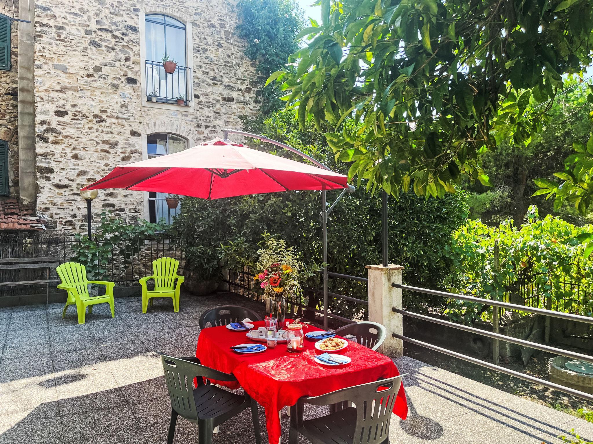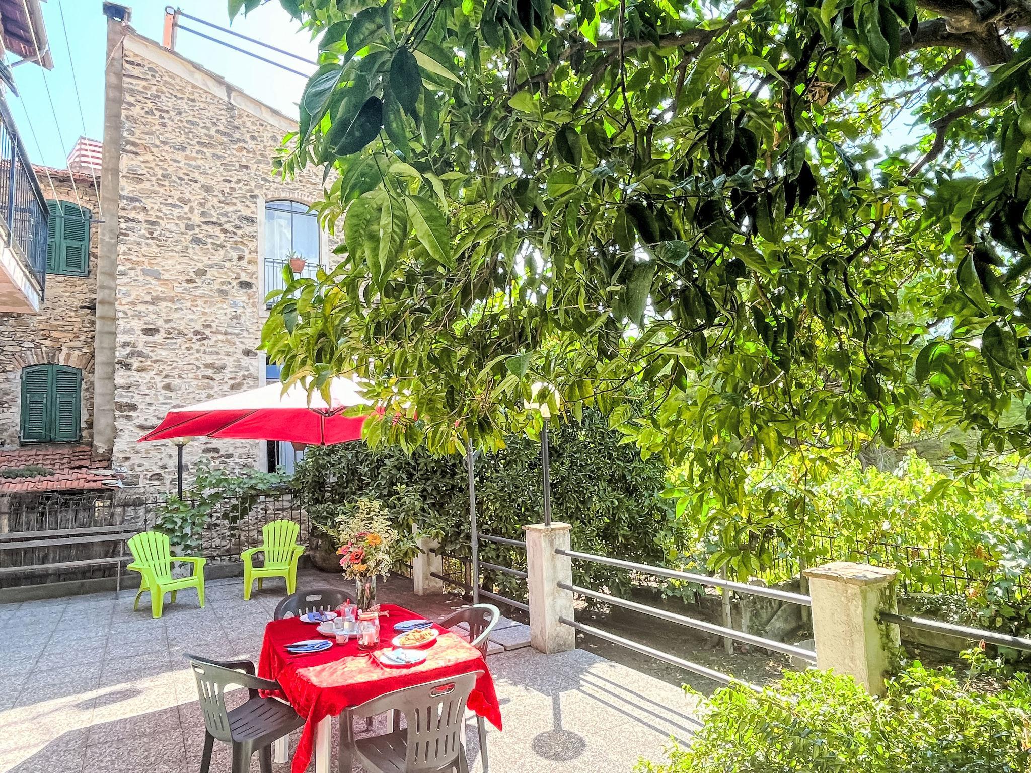Cosy, rustic cottage "Casa Simona", semi-detached. In the district of Costa Carnara 2 km from the centre of Dolcedo, 9 km from the centre of Imperia, 36 km from the centre of Sanremo, on a slope, 9 km from the sea. Private: natural state property 100 m2 (fenced) with trees. 100 m footpath to the house. Parking (for 2 cars) on the premises, public parking 200 m. Shop 2 km, supermarket 9 km, restaurant 2 km, bakery 2 km, café 2 km, bus stop 12.9 km, sandy beach "Imperia Borgo Marina" 10 km pebble beach "Imperia Borgo Prino" 9 km, bathing lake "Lecchiore" 4 km. Part of the house is closed and unoccupied.
