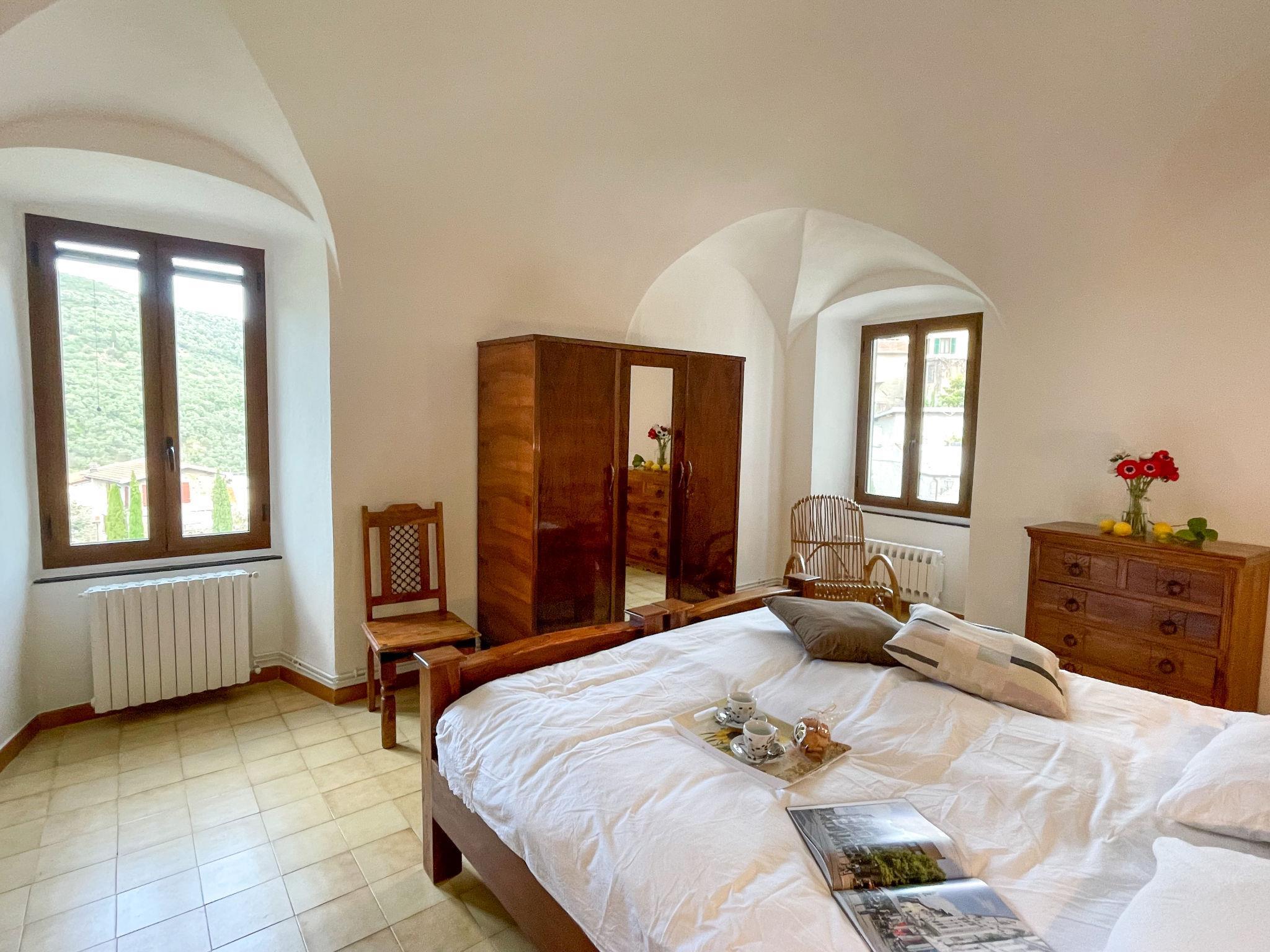 Agriturismo "Asplanato", 2 storeys, surrounded by trees, meadows and vineyards. 6 apartments in the residence. In the district of Lecchiore 5.5 km from the centre of Dolcedo, 12 km from the centre of Imperia, 39 km from the centre of San Remo, in a quiet, sunny position, 200 m from the edge of the forest, 15 km from the sea, 500 m from the lake, in the countryside. For shared use: beautiful, well-kept garden 1'000 m2 (not fenced) with flowers and trees, meadow, swimming pool (12 x 4 m, seasonal availability: 01.Apr. - 30.Oct.). Outdoor shower, pergola, terrace, garden furniture, barbecue. In the complex: washing machine (for shared use). 30 m footpath to the house. Parking (for 6 cars) on the premises. Shop 5.5 km, supermarket 12 km, restaurant 5.5 km, bar 5.5 km, bakery 5.5 km, bus stop "Lecchiore" 300 m, sandy beach "Imperia" 17 km pebble beach "Imperia" 12 km, bathing lake "Laghetti di Lecchiore" 800 m. Marina 17 km, riding stable 7 km, cycle lane 15 km. Please note: car recommended. Local sale of farm products. Loading and unloading of baggage is possible at the holiday house. Additional accommodations can be booked.