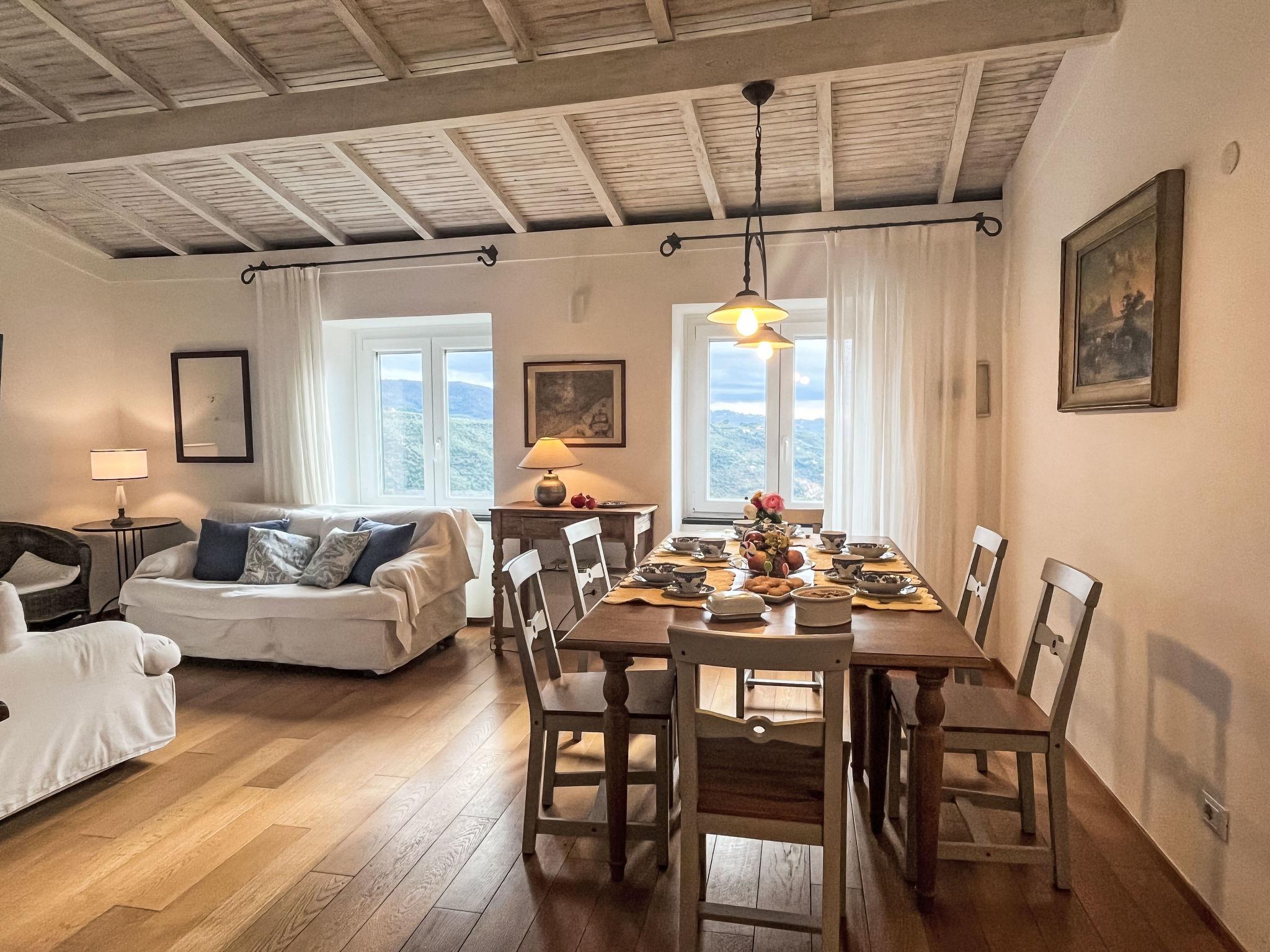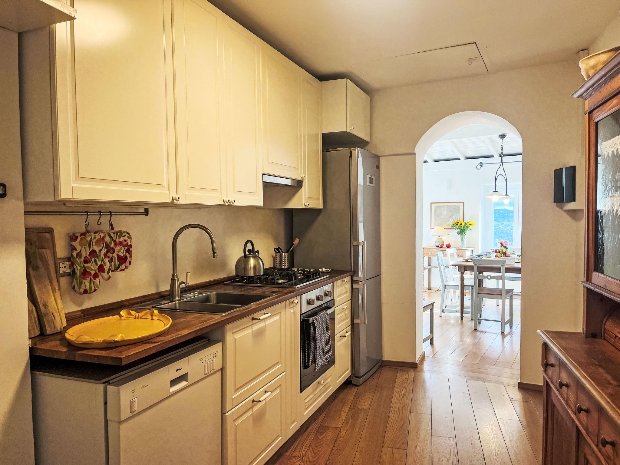 "Bellissimi (DOL280)", 5-room terraced house 110 m2 on 3 levels. Partly renovated in 2022, beautiful and stylish furnishings: 1 small room with 1 sofabed (80 cm), shower/WC and air conditioning. Upper floor: (spiral staircase), 2 small rooms, each room with 1 french bed and air conditioning. 1 small room with 1 x 2 bunk beds (80 cm). Shower/bidet/WC. 2nd upper floor: (spiral staircase) living room with dining table, satellite TV, hi-fi system and DVD. Open kitchen (oven, dishwasher, 4 gas rings, freezer, electric coffee machine). Exit to the garden. Electric heating, air-conditioning. Heating available only from 01.11. to 10.05. Parquet floors. Patio 12 m2, porch. Terrace furniture, deck chairs. Beautiful view of the valley and the countryside. Facilities: iron. Internet (WiFi, free). IT008030C2UZO9GOXA