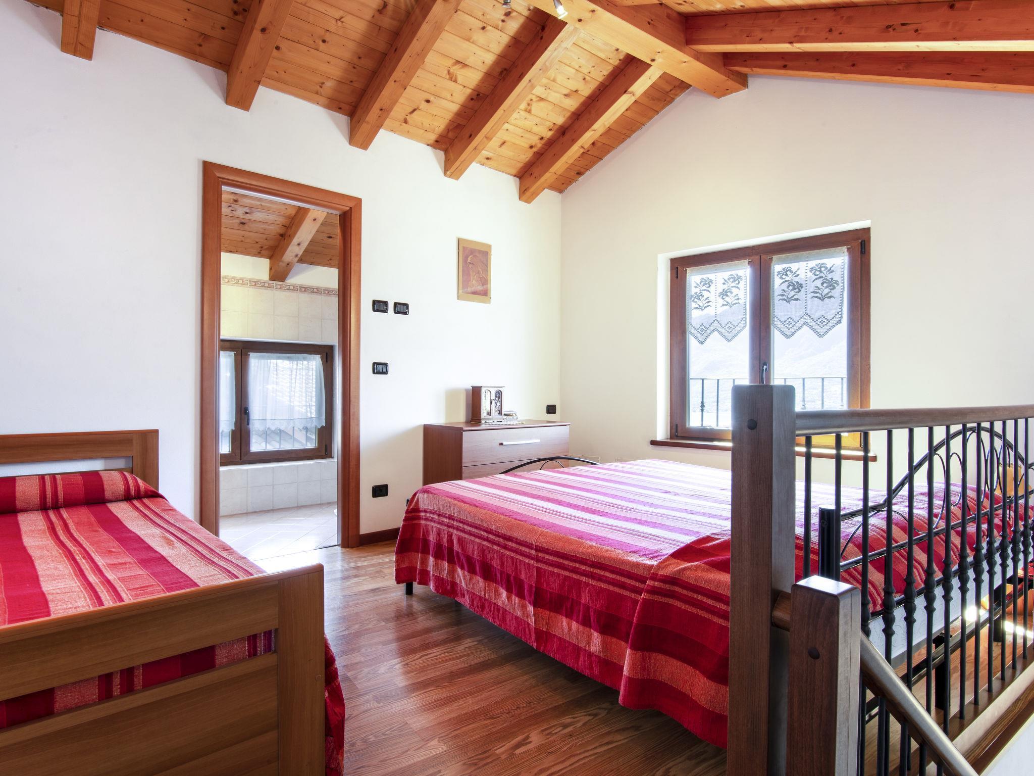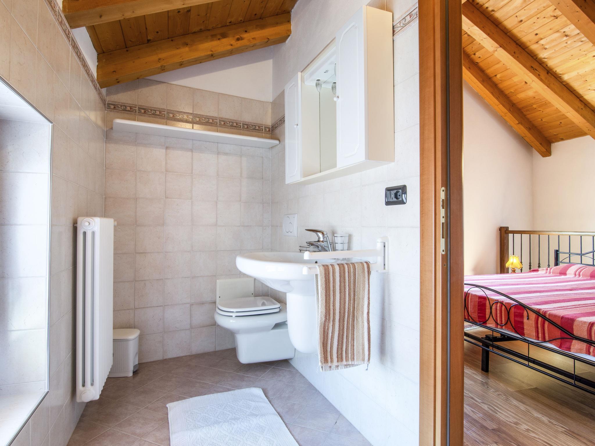 "Laura (DMA320)", 3-room apartment 60 m2 on 2 levels on 2nd floor, south facing position. Cosy furnishings: living/dining room with open-hearth fireplace, dining table and satellite TV. 1 double bedroom. Open kitchen (oven, dishwasher, 4 gas rings, toaster, kettle, microwave, freezer, electric coffee machine). Shower/bidet/WC. Upper floor: 1 room with 1 bed and 1 double bed. Shower/bidet/WC. Gas heating. Heating available only from 15.10. to 15.04. Terrace furniture, barbecue (portable). Beautiful view of the lake and the mountains. Facilities: washing machine, iron, children's high chair, baby cot. Internet (WiFi, free). Please note: maximum 1 pet/ dog allowed. Private entrance. IT013239C2OZHBVFIT