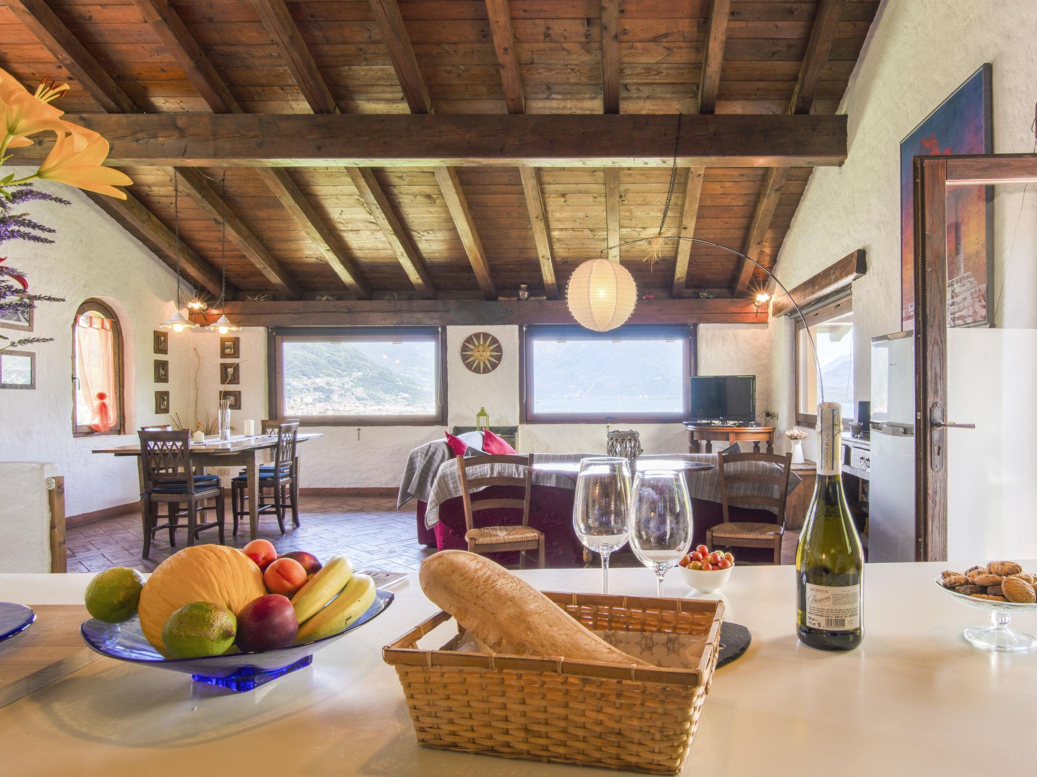 3-room house 140 m2 on 2 levels. Tasteful and cosy furnishings: 1 room with Dressing room with 1 double bed (160 cm). Exit to the garden. 1 room with 2 beds and 1 sleeping facility. Bath/shower/WC. Upper floor: large living/dining room with panoramic window with dining table and TV (flat screen). Exit to the terrace. Open kitchen (oven, dishwasher, 4 gas rings, toaster, kettle, microwave, electric coffee machine). Exit to the terrace. Gas heating (extra). Small terrace roofed, 2 large terraces, west facing position. Terrace furniture, barbecue, deck chairs (5). Panoramic view of the lake. Facilities: washing machine, iron, children's high chair, baby cot. Internet (WiFi, free). Please note: suitable for families. Non-smokers only. Maximum 1 pet/ dog allowed. IT013090C2UGWRMYHT