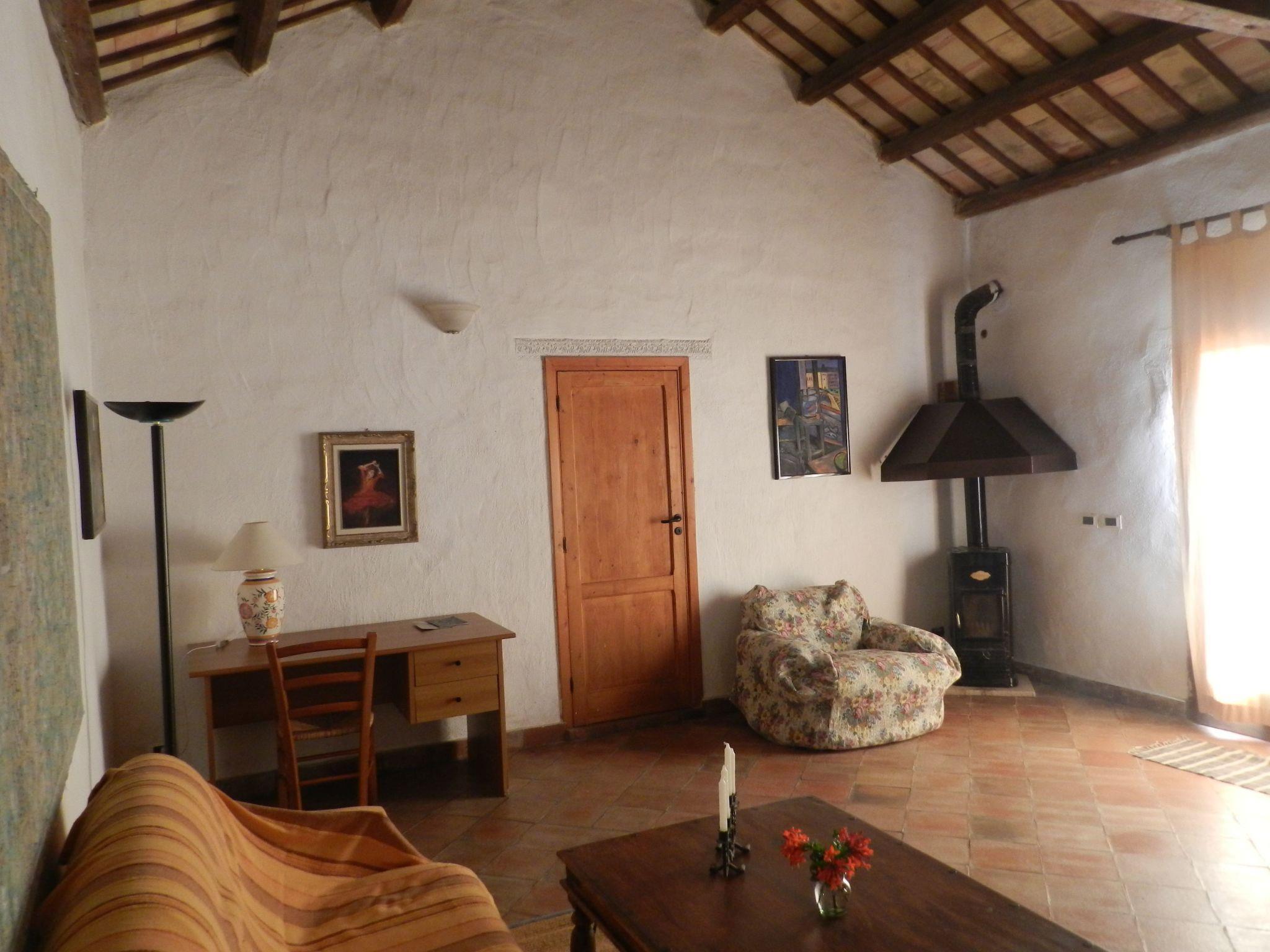 The main floor (approx. 190 square metres), which is arranged in a horseshoe shape around a small agrarian garden, has been lovingly and lavishly restored: large panoramic veranda / terrace with a view of the sea on the horizon in clear weather, 2nd veranda in front of the large dining kitchen (***, off. Fireplace, brick worktop, dishwasher, microwave and washing machine), immense living-bedroom with double sofa bed and exit to veranda, study with stereo, extra bed, lounge with 2 sofa beds, Sat.TV and exit to the garden, intermediate room with single bed and air conditioning, 2 further, very spacious 3-bed rooms, 2 small new bathrooms and a large bathroom (with bathtub) The furnishings are rich and good, many valuable, old pieces in dark wood, high rooms with typical wooden beam ceilings, beautiful terracotta floors, a wood stove and a gas heater are available for the transitional period.