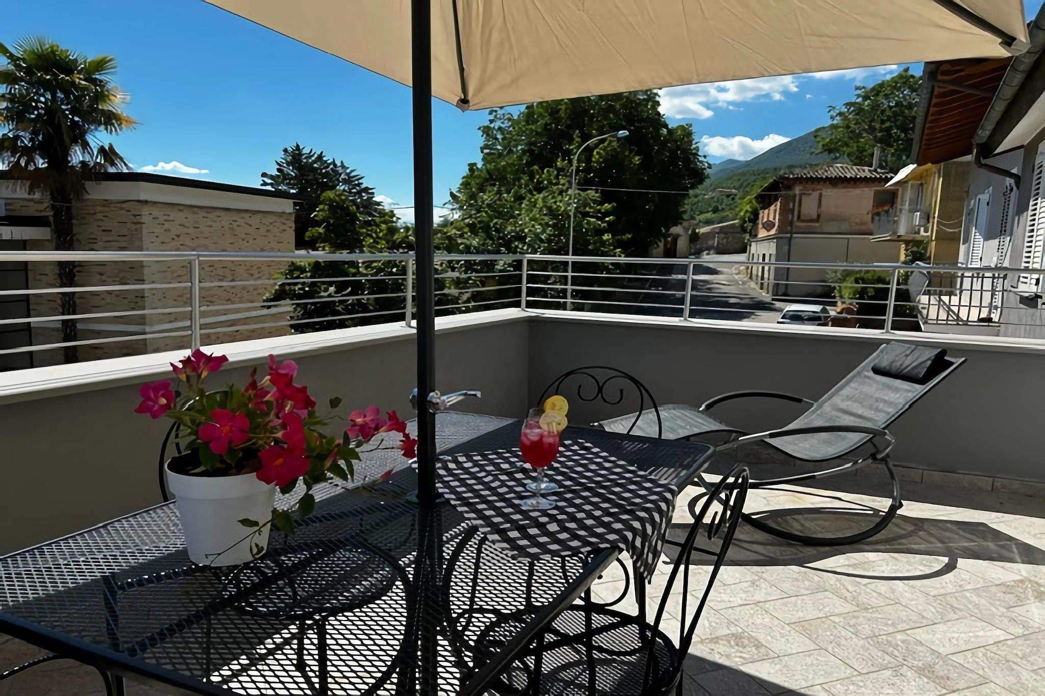 Denne helt nye lejlighed ligger i Esanatoglia, i hjertet af Marche-regionen og ved foden af Appenninerne. Lejligheden ligger på første sal med egen indgang og en stor balkon, hvor du kan slappe af eller spise udendørs. De moderne og varme finish vil få dig til at føle dig straks godt tilpas, og du finder alle de bekvemmeligheder og faciliteter, der skal til for at give dig et behageligt ophold. Få meter fra boligen finder du alle de vigtigste tjenester, såsom butikker, barer og restauranter, hvor du kan smage typisk lokal mad. Herfra kan du begynde at opdage regionens skønheder og seværdigheder: fra de vidunderlige Frasassi-huler til Fiastra-søen, Lame Rosse og de mange historiske landsbyer og slotte i regionen. For elskere af udendørssport er der mange stier, vandre- og cykelruter, der starter kun få meter fra boligen. I køkkenet er der også opvaskemaskine og mikrobølgeovn, Moka-kaffemaskine og maskine med kapsler (IKKE elkedel). Parkeringen er offentlig og gratis lige ved siden af huset. Denne ejendom er kun til feriebrug, og der accepteres ikke arbejdskraft.
