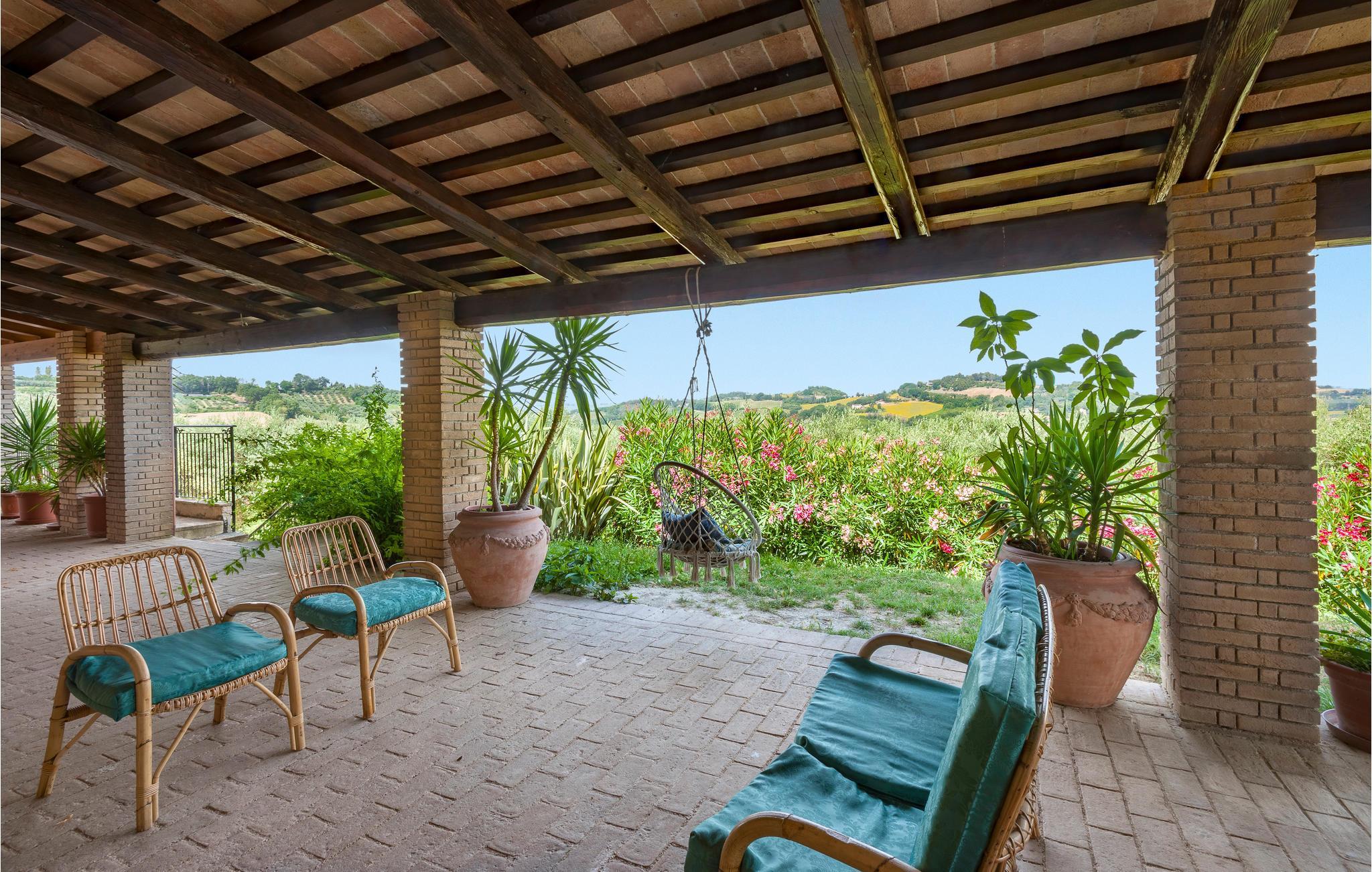 Dette charmerende feriehus i Prelato nær Fano tilbyder jer ideelle forhold for jeres afslappende ferie. Indenfor er der en hyggelig stue, en stilfuld spisestue med pejs og et veludstyret køkken, der fører direkte ud til den store veranda - perfekt til måltider med udsigt over det maleriske landskab. De store soveværelser ovenpå og et lyst billardrum sikrer komfort og underholdning.