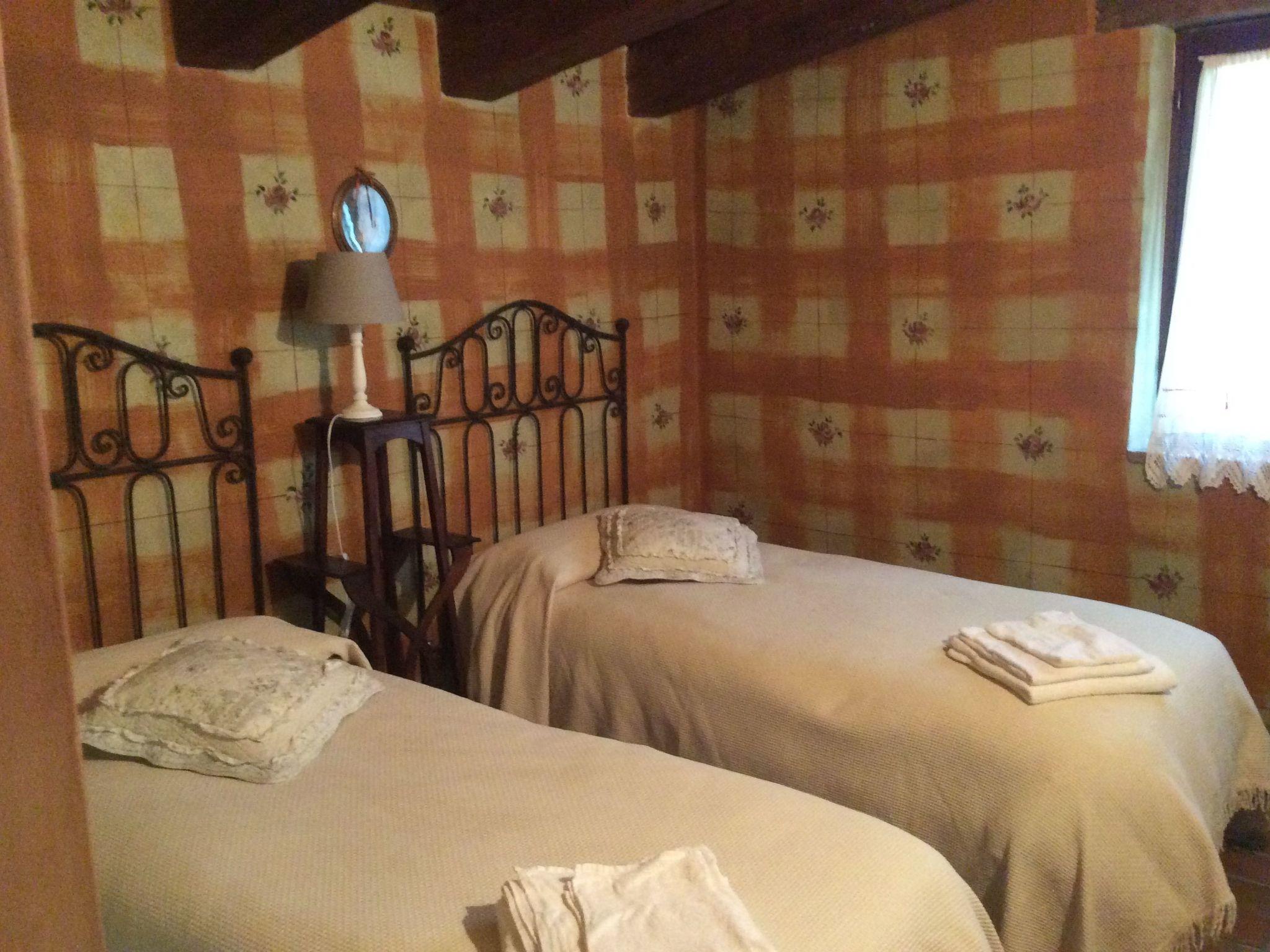 - Open-plan living room with single bed that can be used as a sofa during the day (1 window and 1 Velux) - Double bedroom with exposed wall, wardrobe and TV (1 window) - Bathroom with shower Dependance: - Double bedroom - Twin bedroom - Living room/kitchen with single bed and fireplace - Bathroom with shower - Patio equipped for eating out A maximum of 2 single folding beds can be added.