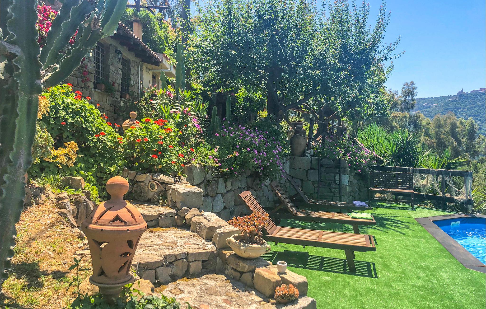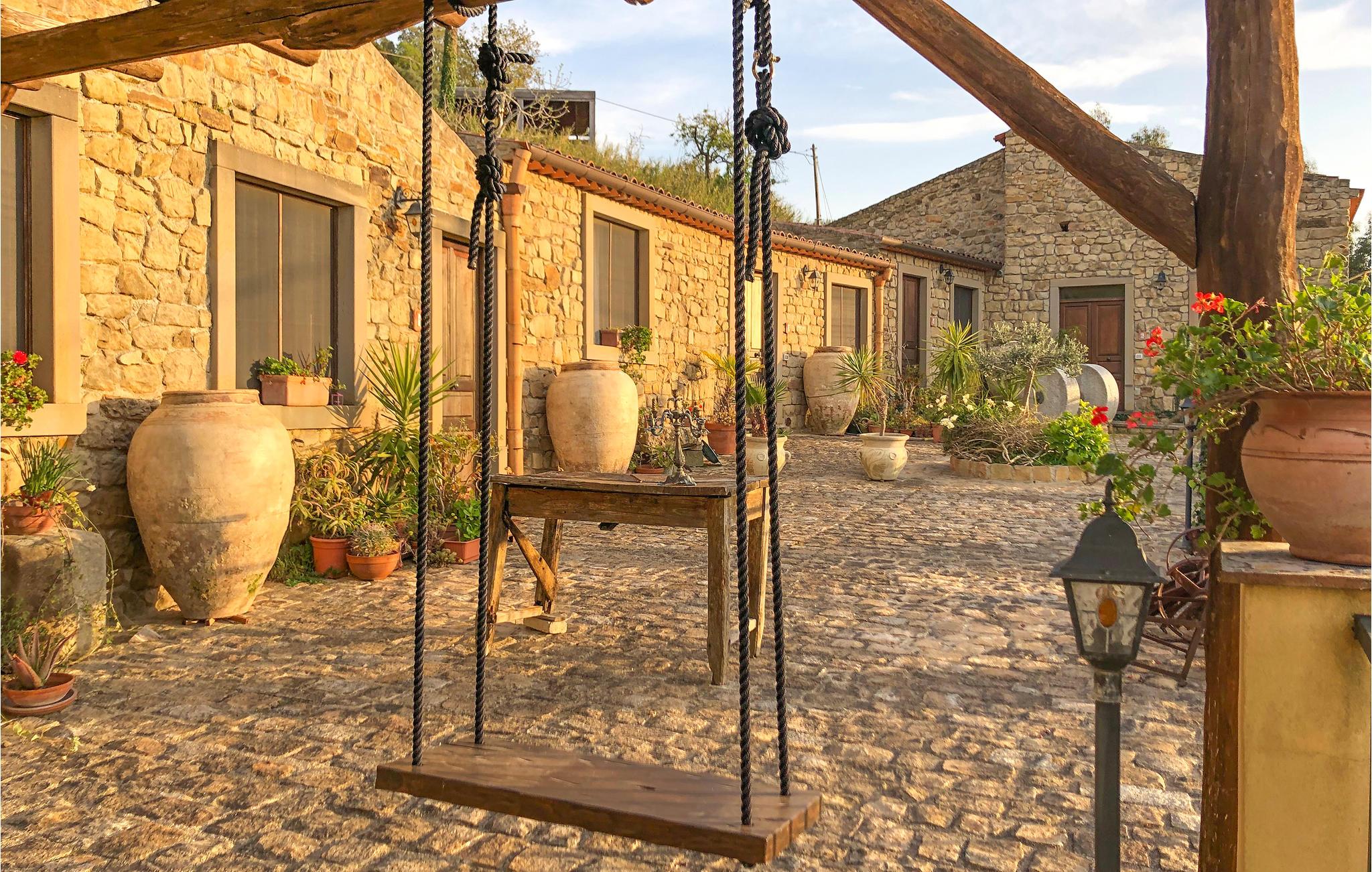 Nyd en fantastisk panoramaudsigt, indrammet af grøn vegetation og farverige blomster, fra denne fantastiske villa, som er bygget i en særdeles autentisk stil og kan rumme en stor feriegruppe. I de gamle stenmure, ved poolen, på den overdækkede terrasse og i den stilfulde, rustikke indretning, føler I jer alle rigtig godt tilpas og kan slappe af væk fra stress og jag, mødes til solide måltider eller finde et roligt hjørne at læse .