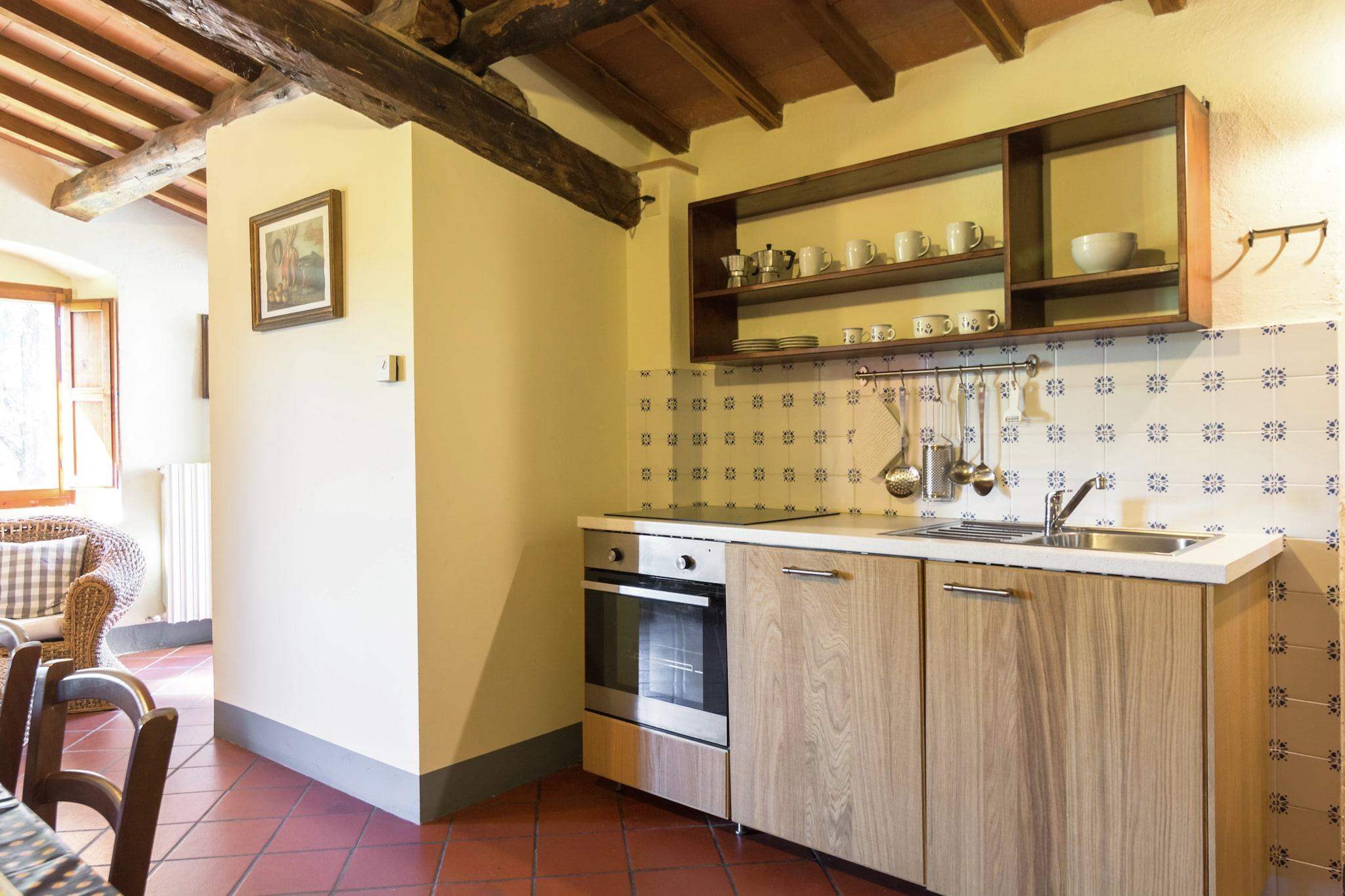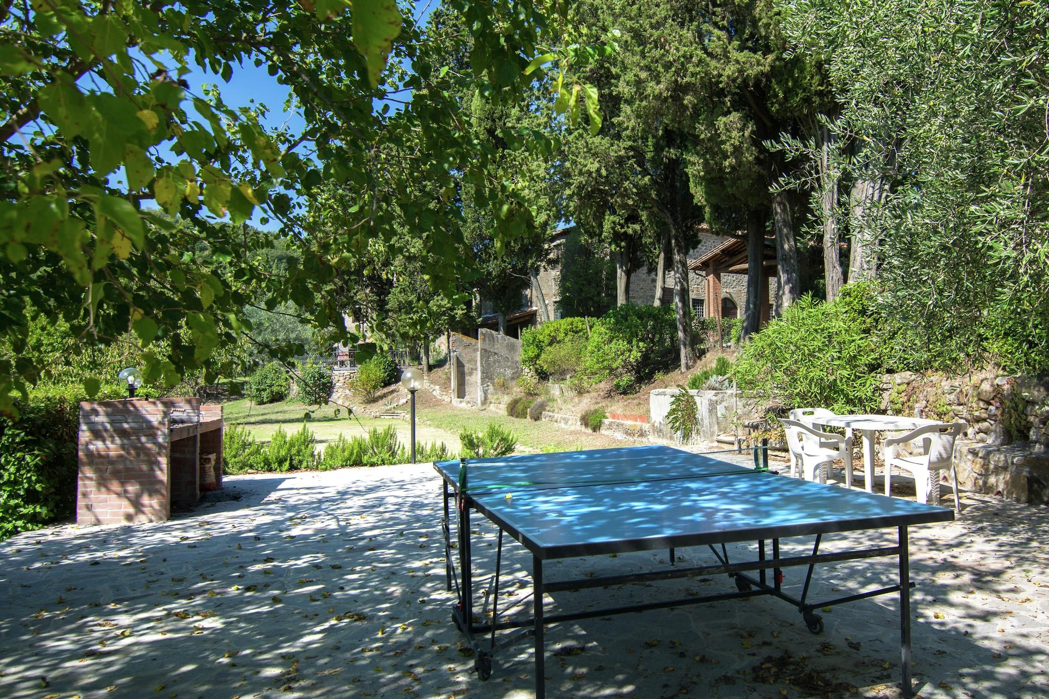 Beliggende i Figline e Incisa Valdarno nær Firenze, er dette kæledyrsvenlige feriehus ideelt til en afslappende ferie i det toscanske landskab. Lejligheden med 2 soveværelser kan rumme op til 4 gæster og tilbyder WiFi, privat terrasse og hyggeligt opholdsrum med pejs. Gæsterne kan nyde delt adgang til en 14x7 m swimmingpool (åben maj til september), en boulebane, bordtennis og en have med grillfaciliteter. Det fuldt udstyrede køkken omfatter mikroovn, grillovn, opvaskemaskine og køleskab med fryser. To badeværelser sikrer ekstra bekvemmelighed under dit ophold. Omgivet af skov (kun 100 m væk) og beliggende nær en sø, er huset en naturelskers glæde. Det er perfekt placeret til dagsture til Firenze (35 km), Siena, Arezzo og Chianti. Butikker, restauranter og offentlig transport ligger inden for 4 km, og banegården og motorvejen er også i nærheden. Der er privat parkering på stedet.