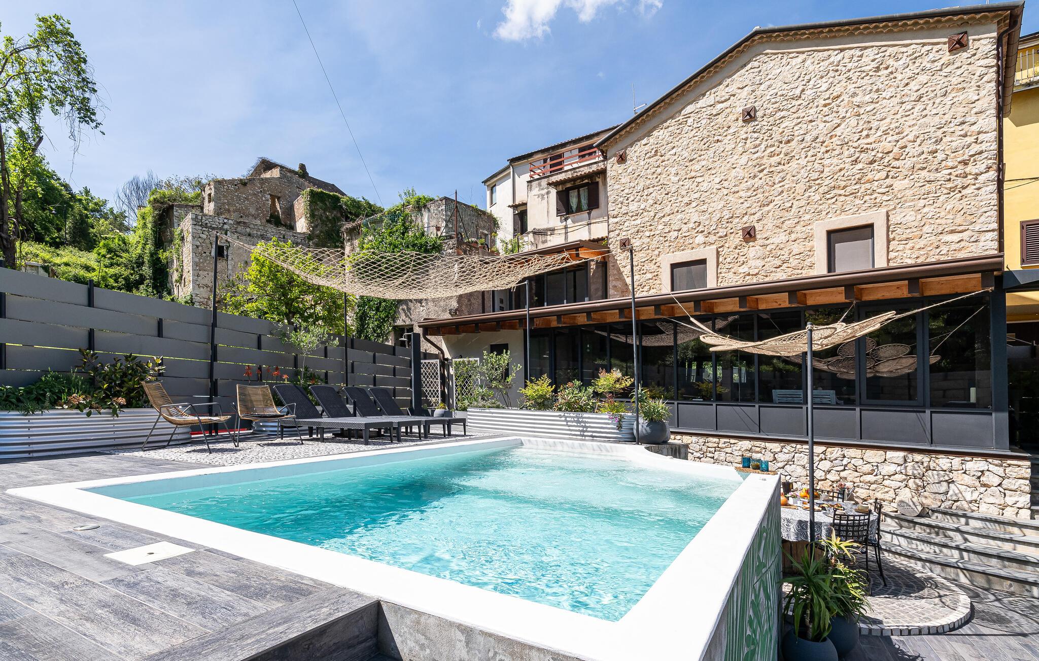 Se frem til en unik ferie i dette indbydende sommerhus med pool.