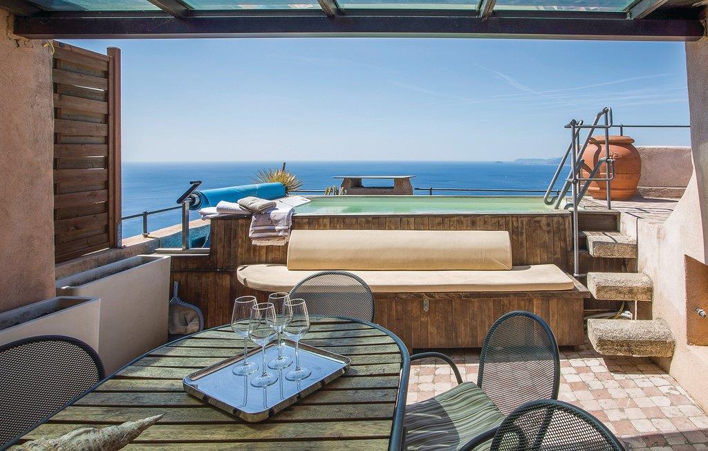 Vidunderligt feriehus af natursten med over tusind års historie, i rolig beliggenhed med panoramaudsigt i middelalderbebyggelsen Borgo Verezzi, nær Finale Ligure. De fire godt møblerede terrasser, som byder på en utrolig udsigt ud over landsbyens tage og det Liguriske hav med øerne Gallinara og Korsika. På husets terrasse på tredje sal er der en whirlpool til fire personer (ikke opvarmet fra 1/5 - 30/9), og herfra er det en særlig fornøjelse at nyde den smukke udsigt. Denne plejede feriebolig er ideelt til alle, der også i ferien ikke vil undvære smagfuld indretning. Alassios eksklusive strand er kun ca. 3 km herfra, og på de fleste af Liguriens romantiske strande kan I leje liggestole og parasoller. Som et alternativ til en dag på stranden kan I også besøge de flotte, små byer Albenga og Sestri Levante, som I kan komme til på kun få minutter i bil, og lad jer fortrylle af Cinque Terres charme, de små bjerglandsbyer og de overvældende panoramaer. I kan også arrangere en tur til øen Gallinara. Hele kyststriben er et paradis af havets skønhed.